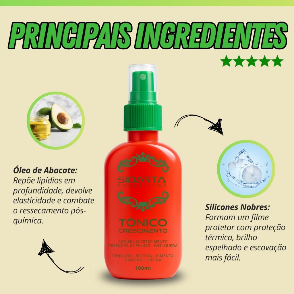 Combo Pro+ (3x3cF) Sidarta Crescimento Capilar -- Tônico Explosivo + Shampoo + Condicionador: