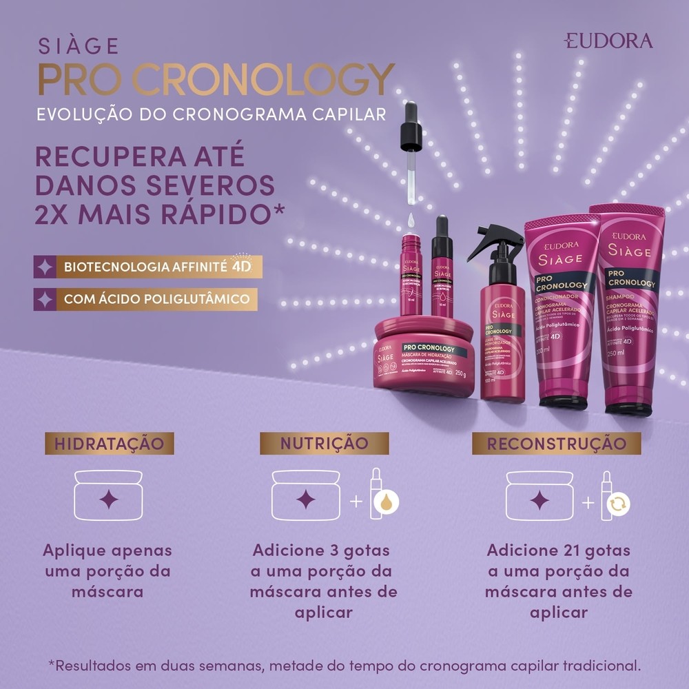 Combo Siàge Pro Cronology: Shampoo 250ml + Condicionador 200ml + Kit Cronograma Capilar Acelerado