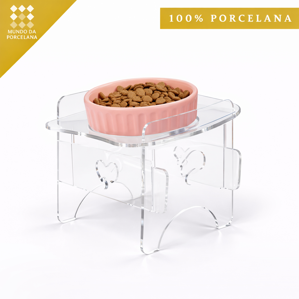 Comedouro Elevado Pet Acrílico Tigela Porcelana 190ml Gatos Cachorro