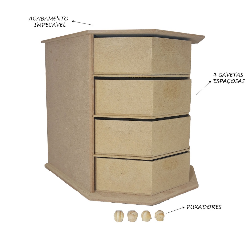 Comoda com 4 Gavetas Sextavada Tamanho G 26x27x27,5 Mdf Madeira