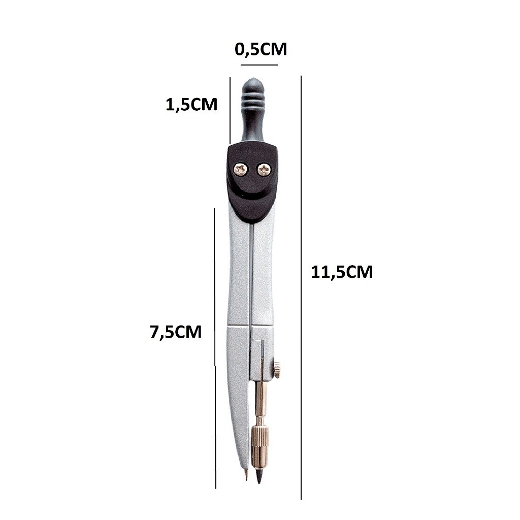 Compasso LeoLeo Metálico 11,5cm Multiuso Diversas Cores Escolar Papelaria Resina Termoplásticas Metal Grafite Papelaria
