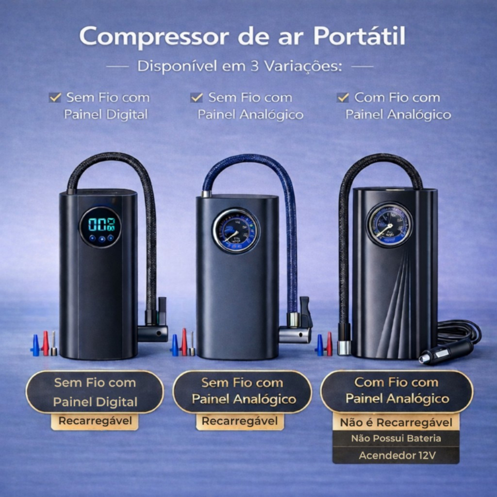Compressor Detector de Ar Portatil Recarregavél Com Fio Sem Fio Digital USB Calibrador Pneu de Carro Automóvel