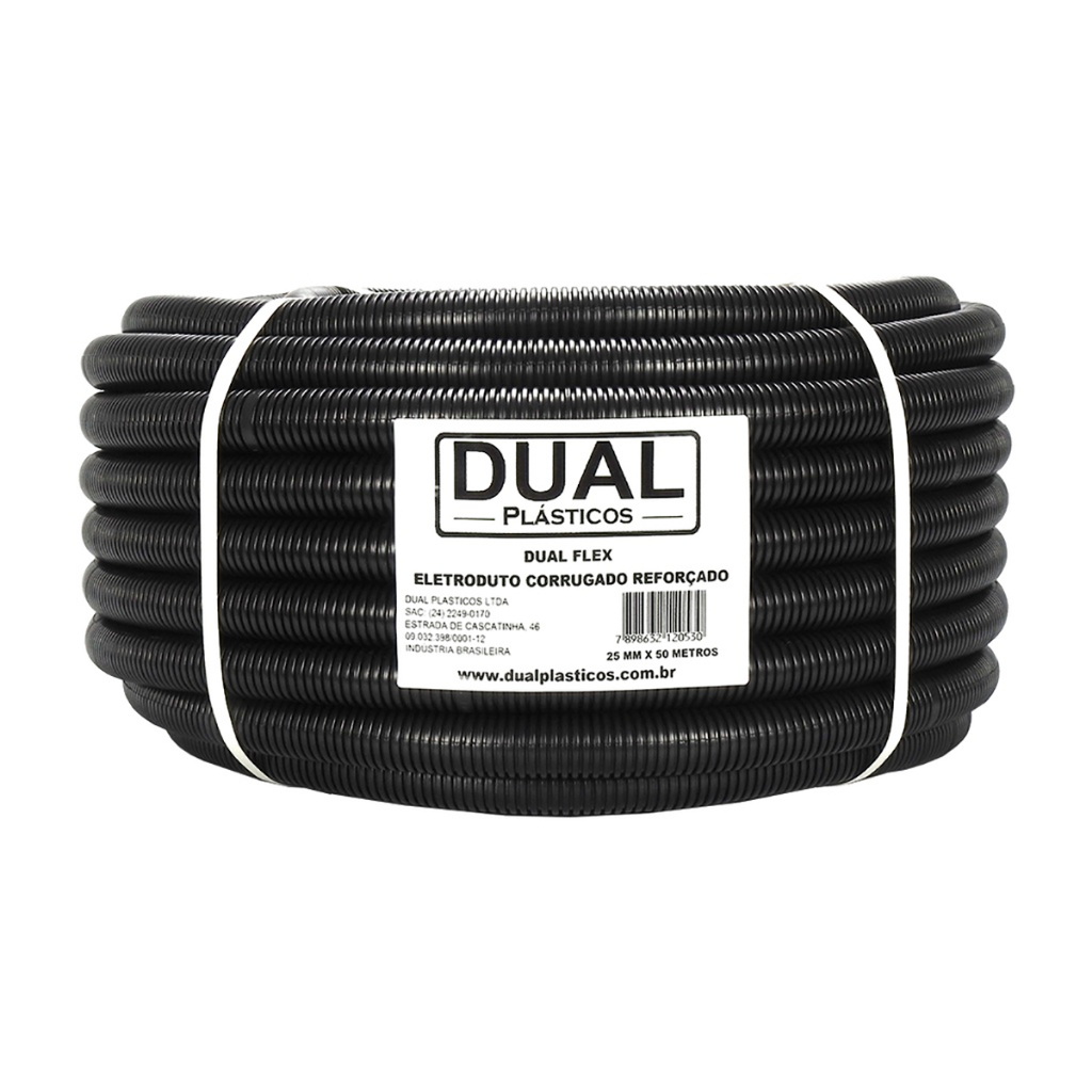Conduite 3/4" Corrugado Eletroduto Reforçado Preto 50 Metros Dual