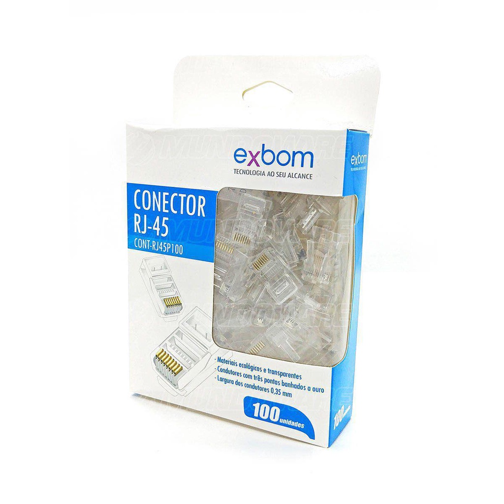 Conector Rj45 8X8 Cat5E Suporte Gigabit Ethernet 100Und