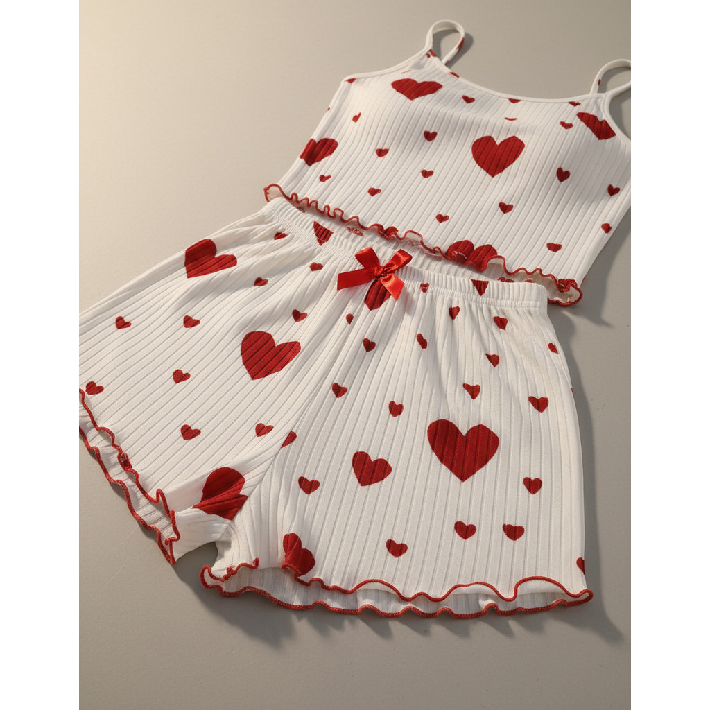 Conjuntinho Baby Dool Feminino Verão Sexy de Coração, Baby Doll Blogueirinha Pijama Sensual
