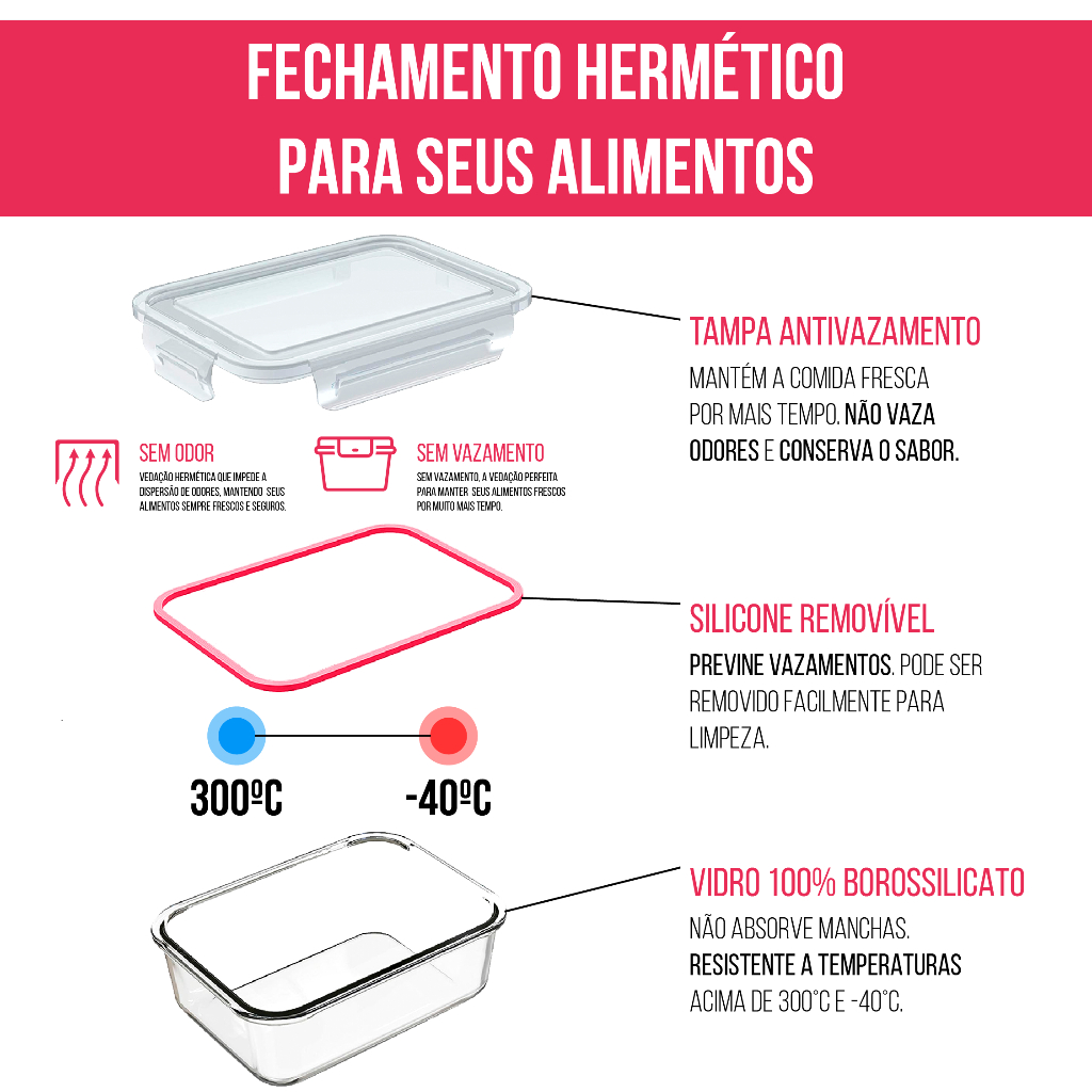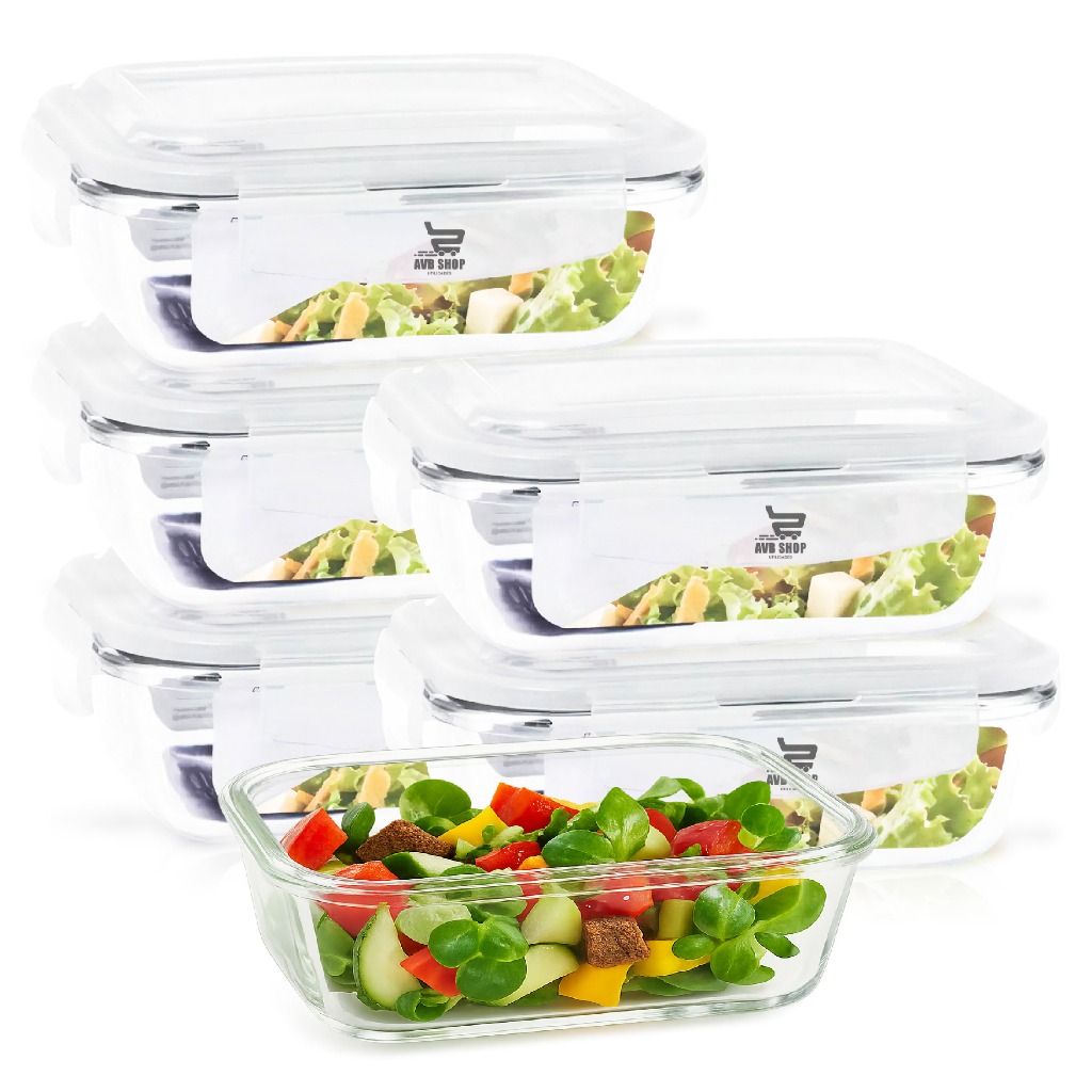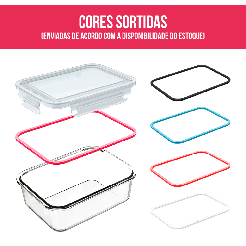 Conjunto 10 ou 6 Potes 640ml Vidro Hermético 4 Travas Marmita Fitness Organizadoras para geladeira