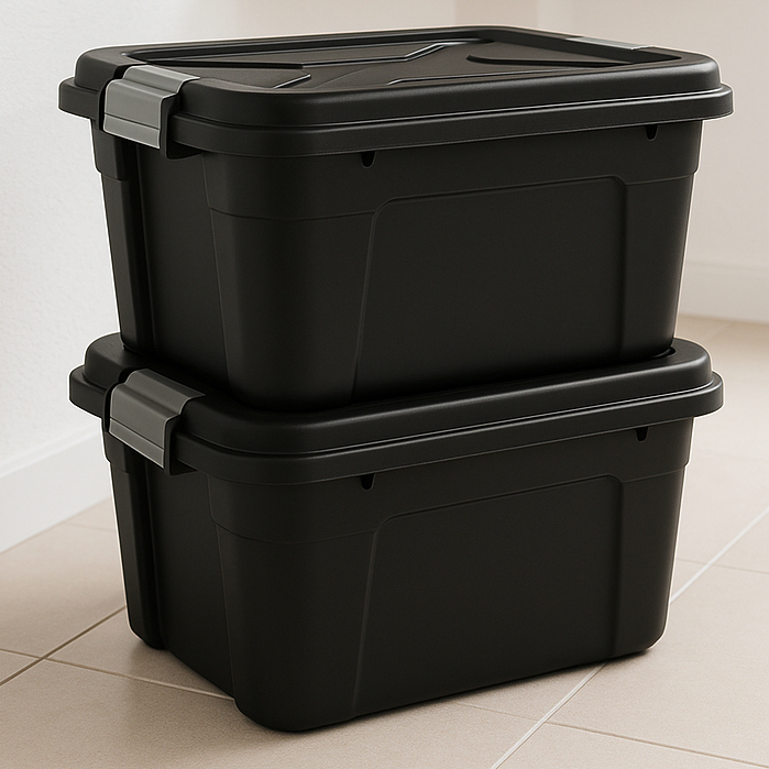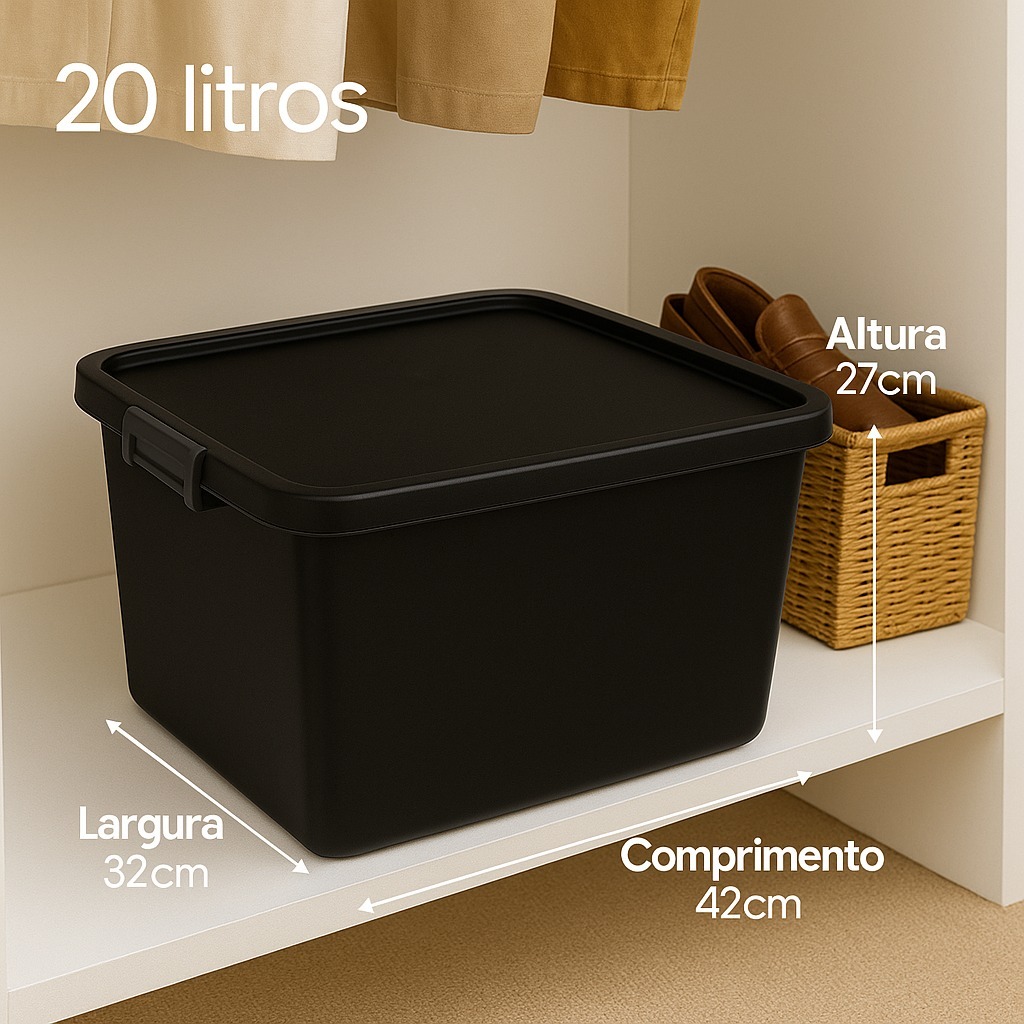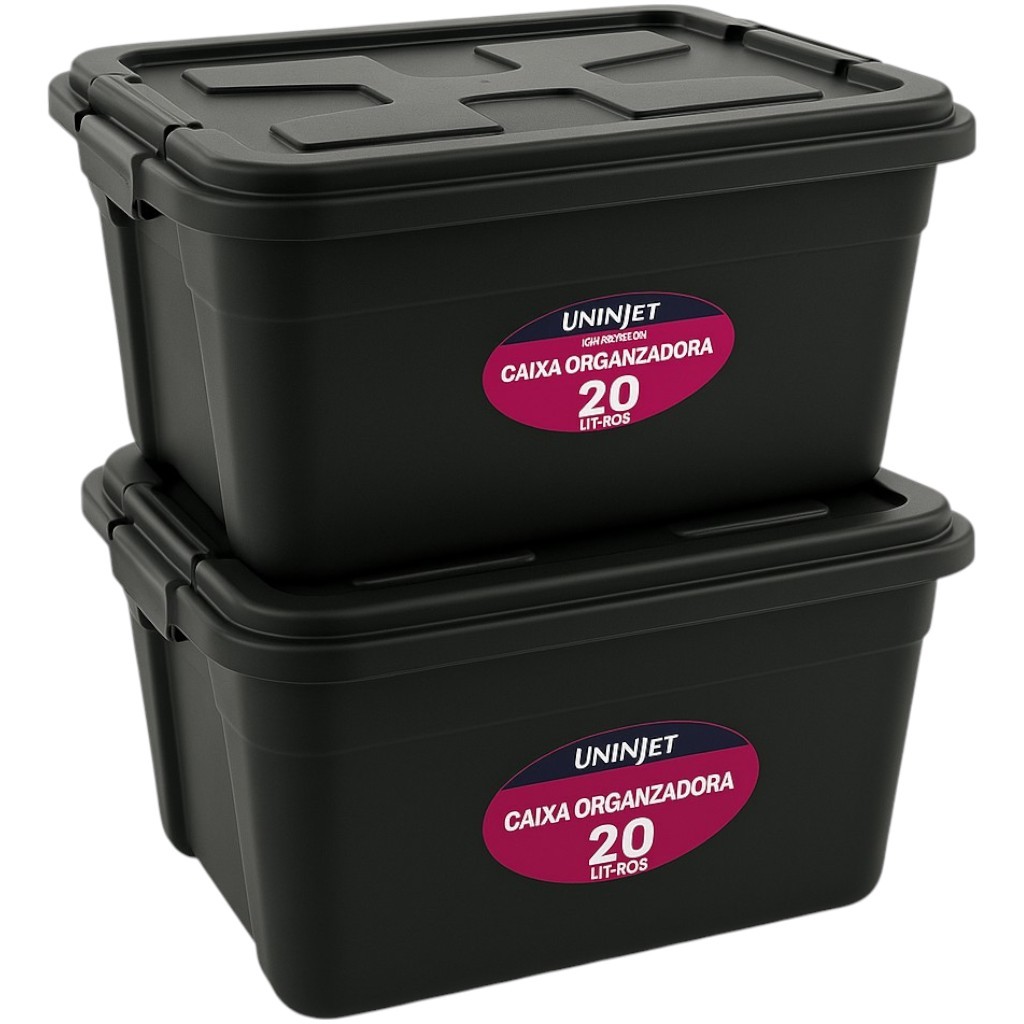 Conjunto 2 Caixas Organizadoras com Tampa 20 Litros Preta Resistente em Plástico