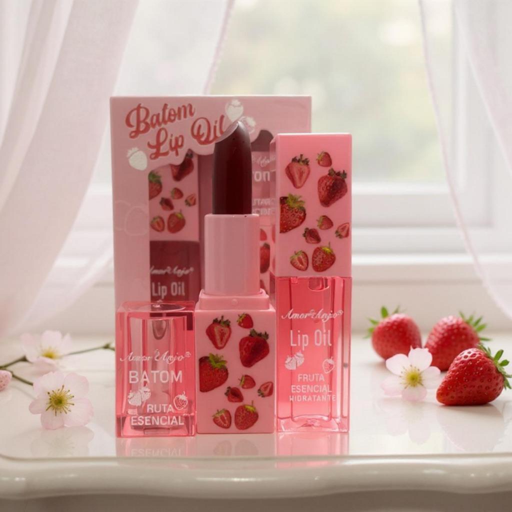 Conjunto 2 lip oil + batom De Cuidados Labiais Hidratantes Suaves Com Cor