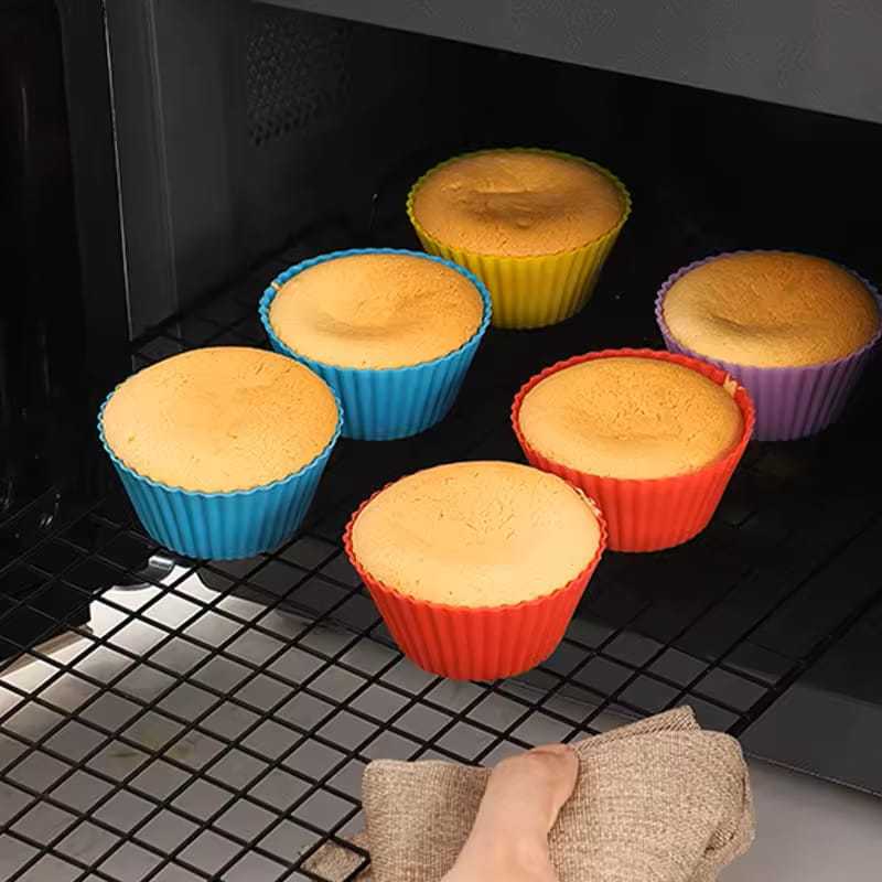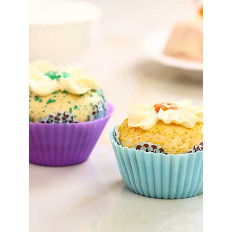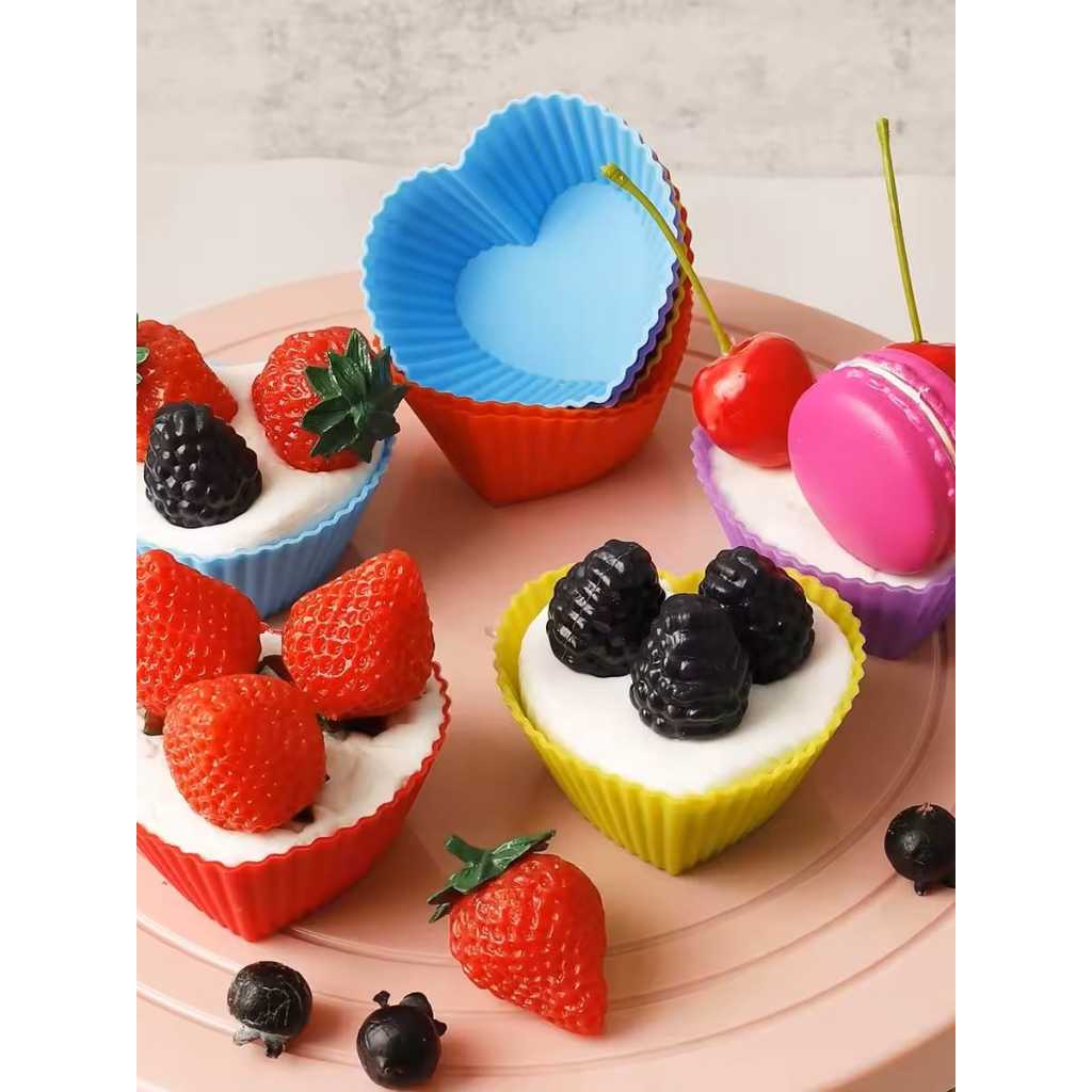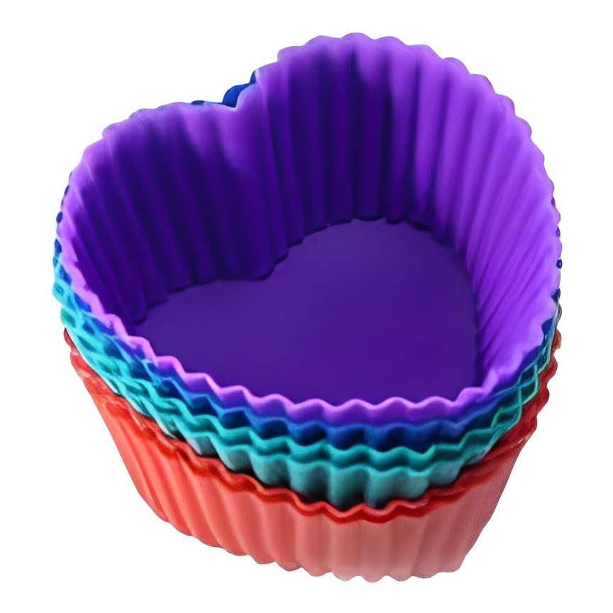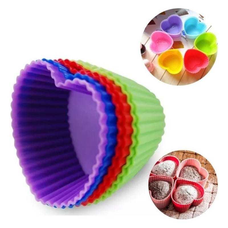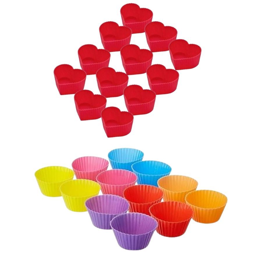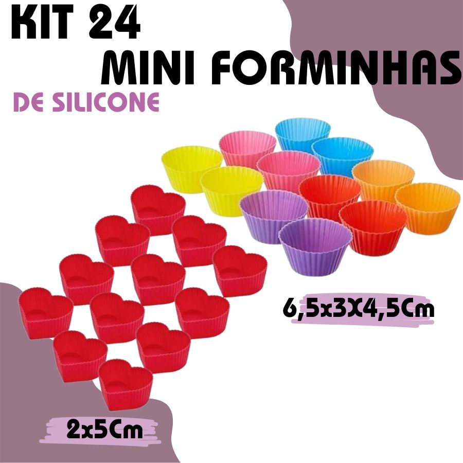 Conjunto 24 Mini Forminhas Silicone Coração Cupcake 2x5Cm E 6,5x3X4,5Cm Colorido Doces Circular