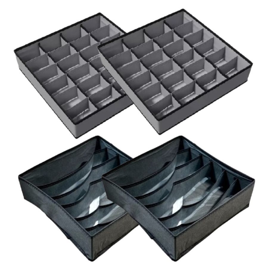 Conjunto 4 Organizadores De Gaveta Dobráveis 30X30X10CM Com 24 Ou 6 Divisórias Para Peças Íntimas
