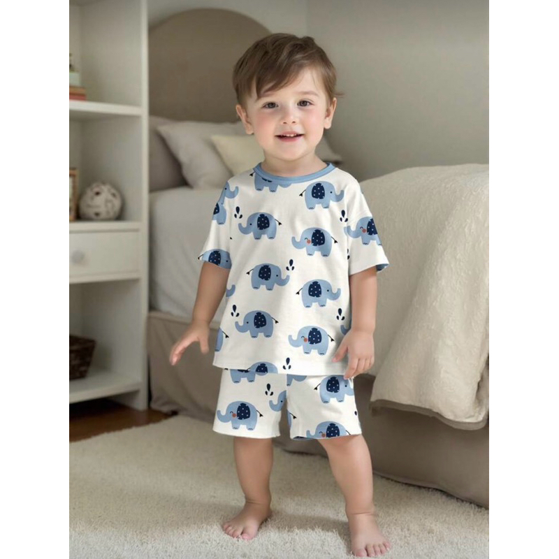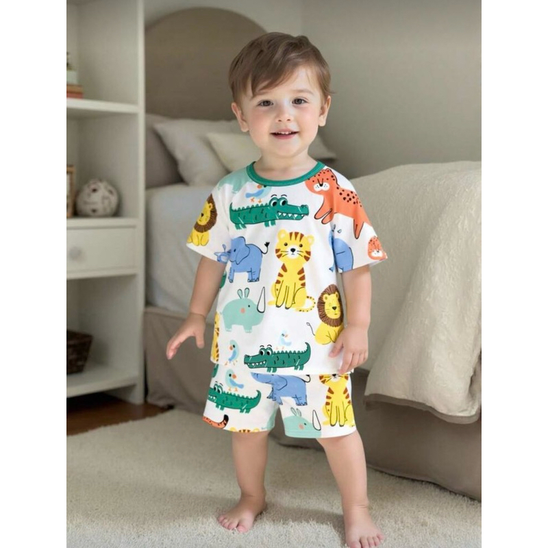 Conjunto 4 pecas de Pijama Solto Casual com Estampa para Menino, e Menina Adequado para o Verão