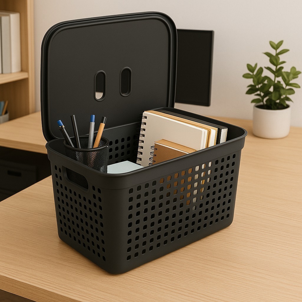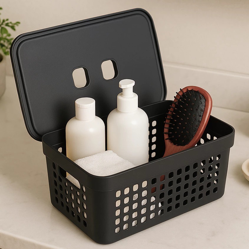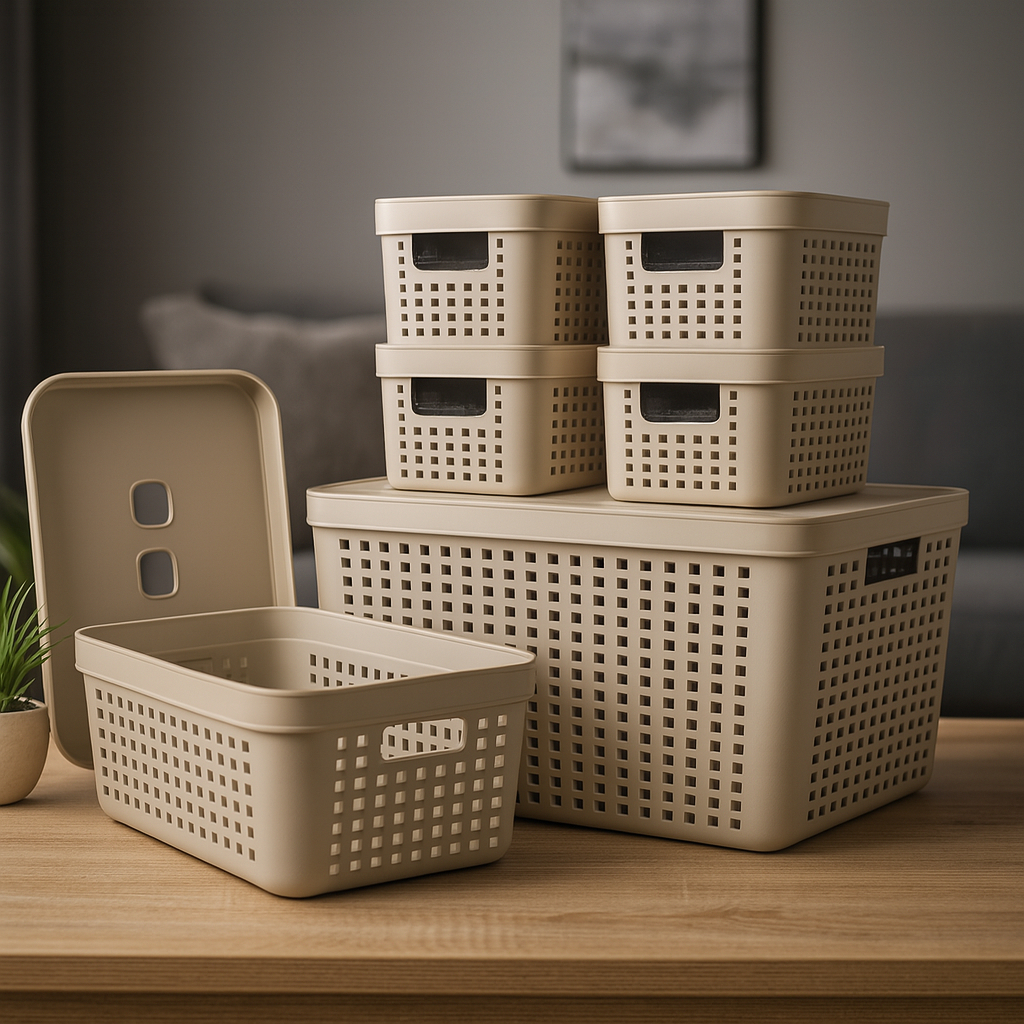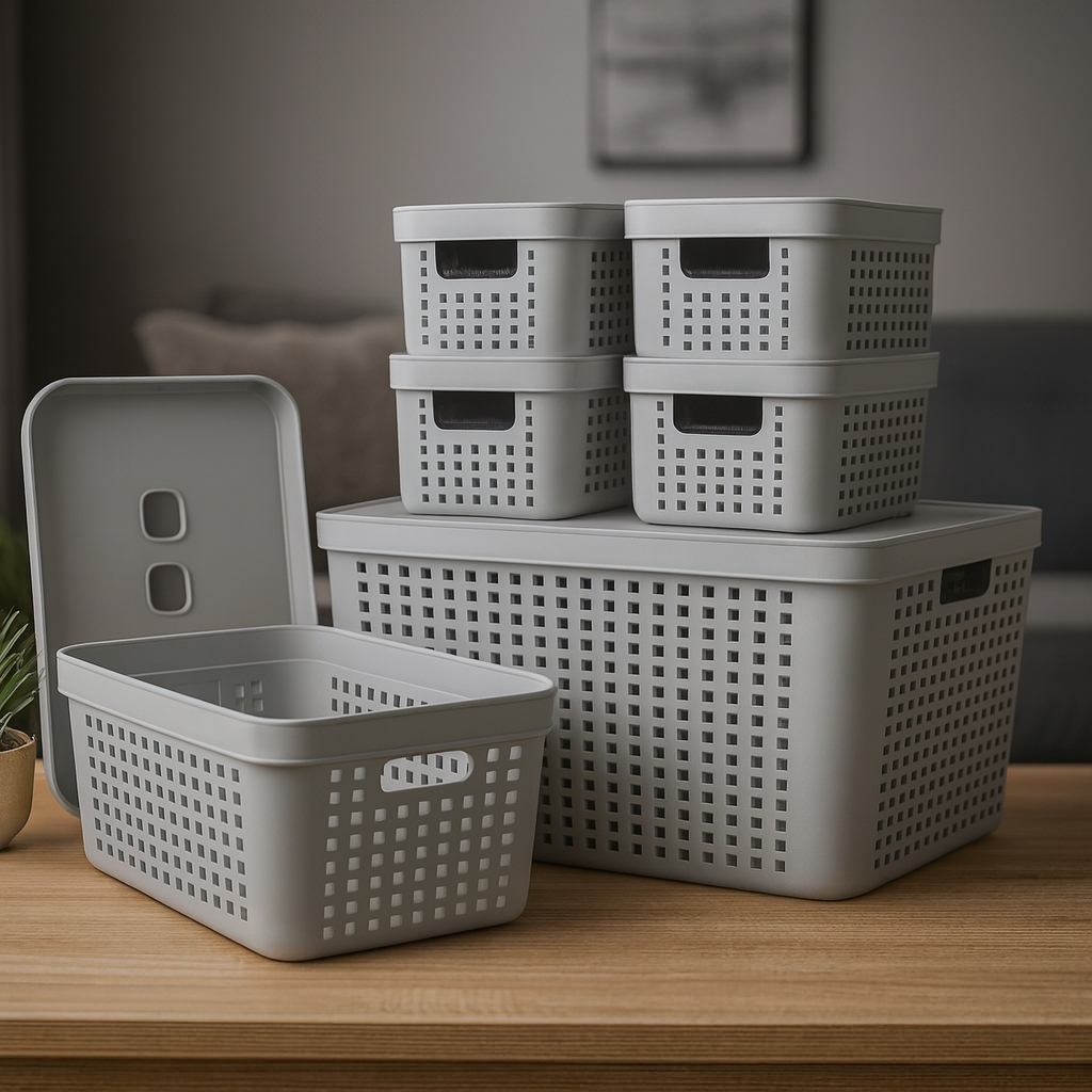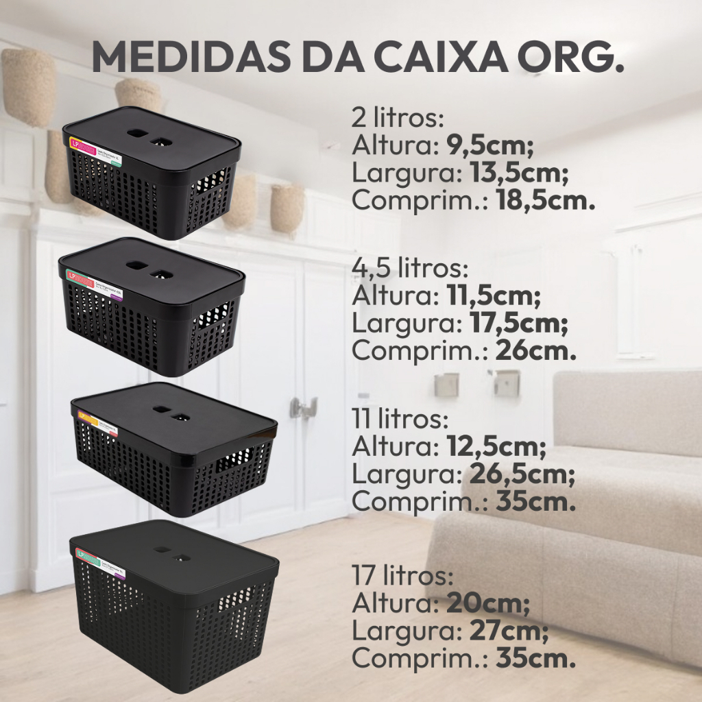 Conjunto 6 Caixas Organizadoras Com Tampa Cesto Grande em Plástico Resistente 2 L 4,5 L 17 L