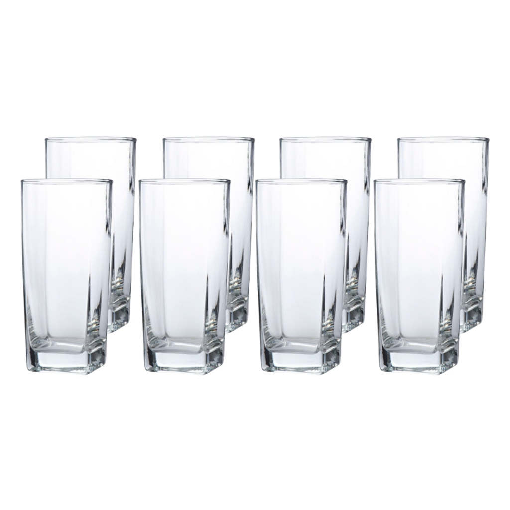 Conjunto 8 Copos de Vidro Bali Texas 320ml Design Quadrado Transparente Água Suco Drinks