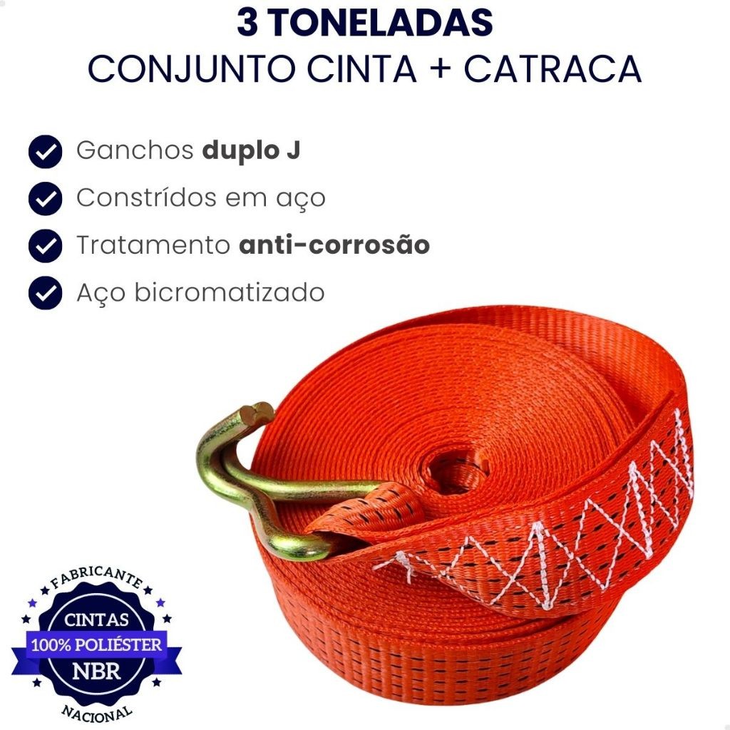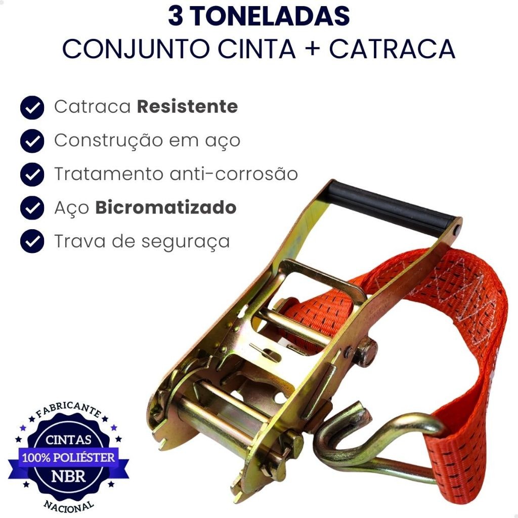 Conjunto Amarração Carga 3 Toneladas 9 Metros Cinta Catraca Reforçada