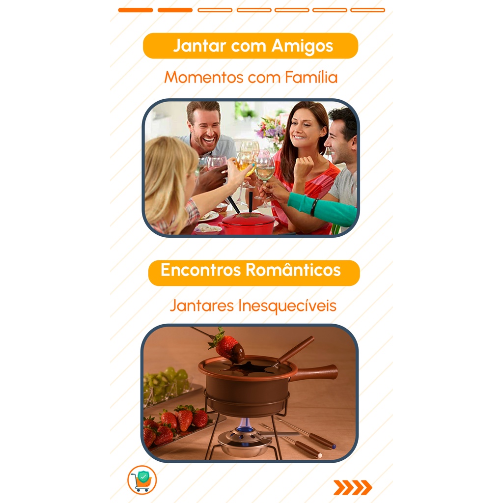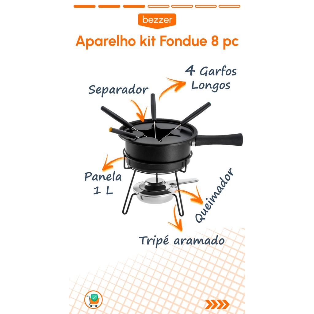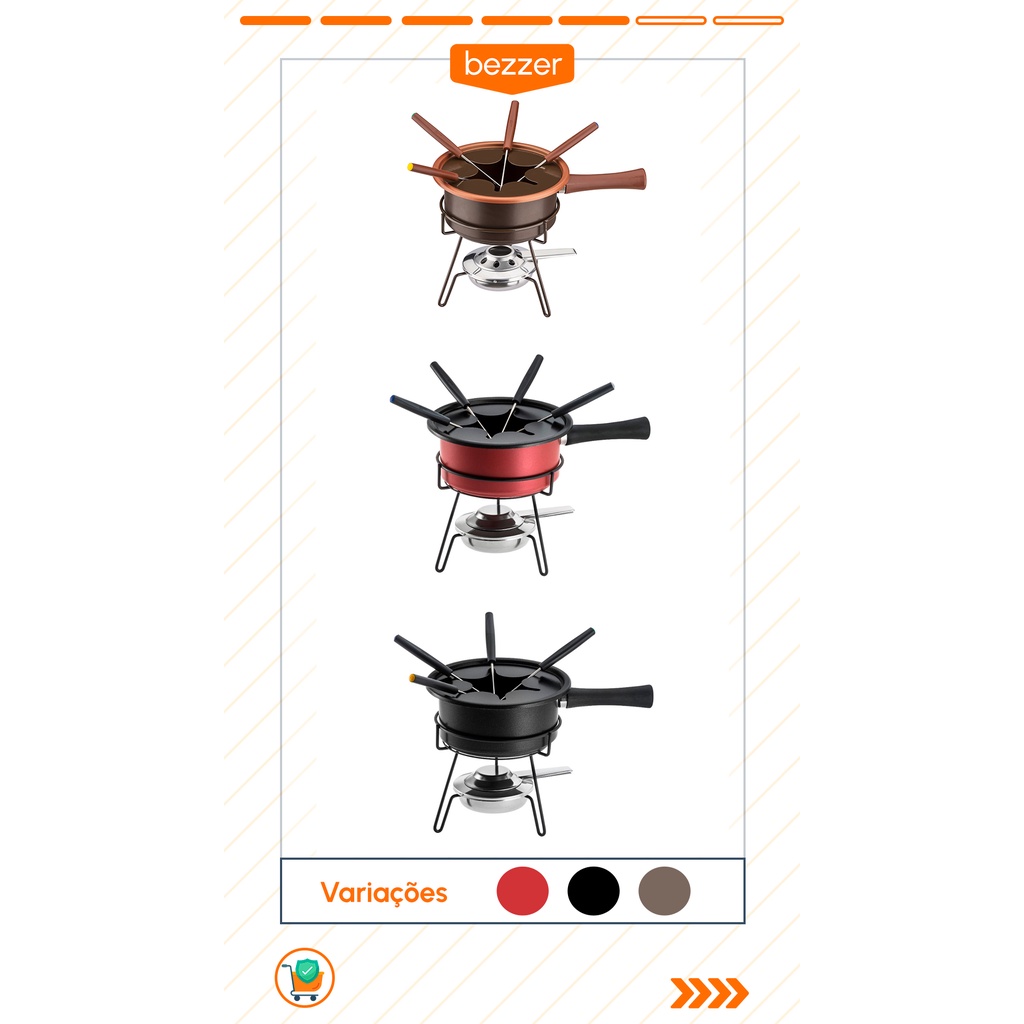 Conjunto Aparelho de Fondue Antiaderente Aspen 8 pçs Kit Serviço de Fundi Completo Alta Qualidade