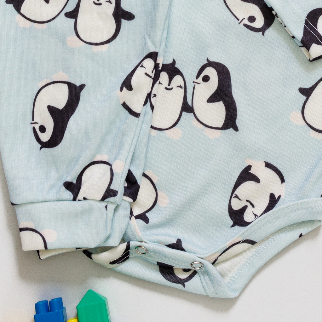 Conjunto Bebê Suedine Antialérgico Pagão Body e Calça Longo Pinguim