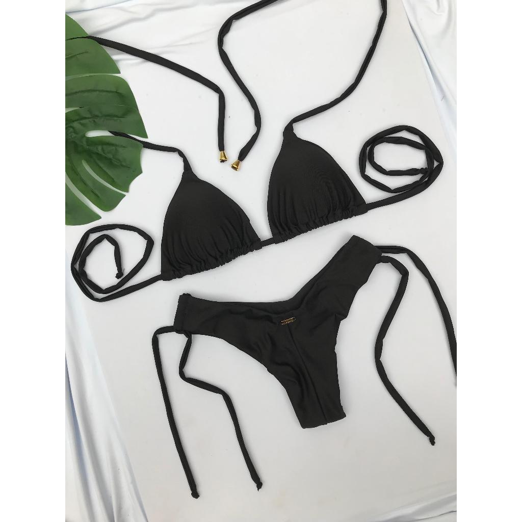 Conjunto Biquíni Cortininha Amarração - Calcinha Fio Duplo Amarração Lateral