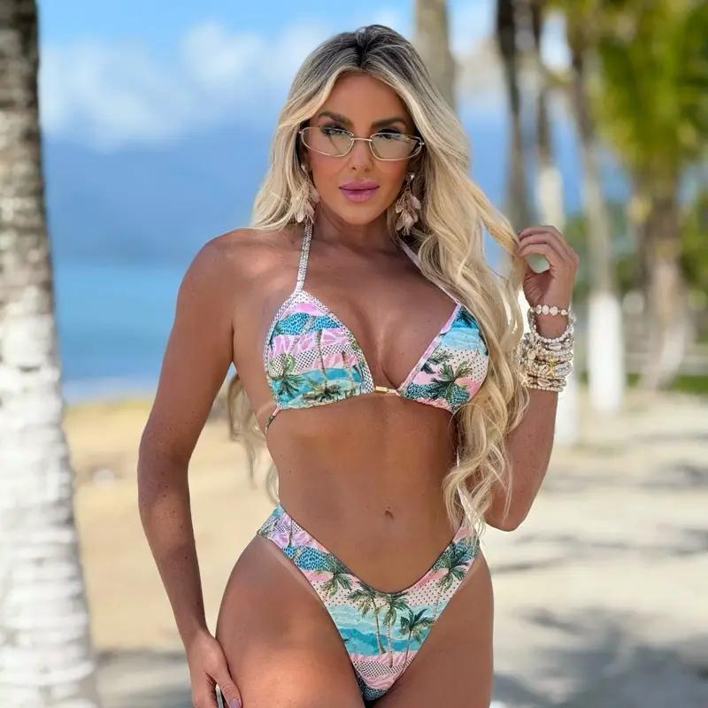 Conjunto Biquíni Cortininha + Shortinho | Look Feminino Praia Verão Colorido Ibiza Rosa e Azul