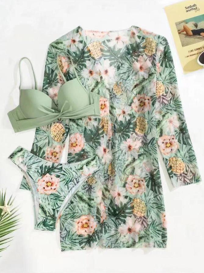 Conjunto Biquíni Feminino De Três Peças Cintura Alta Roupa de Estilo Fato De Banho Impresso De Moda para areia