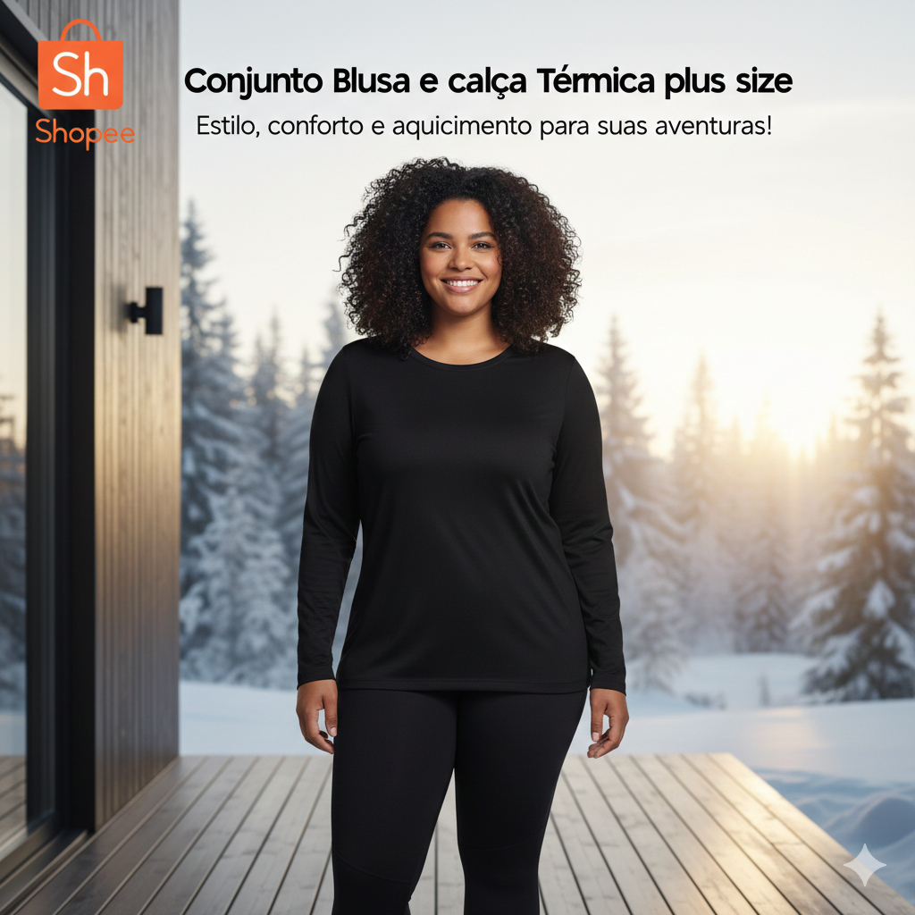 Conjunto Blusa Térmica Flanelada PLUS + Calça Térmica Flanelada PLUS Feminina