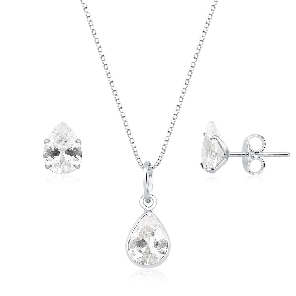 Conjunto Colar e Brinco Gota prata 925 Cristal