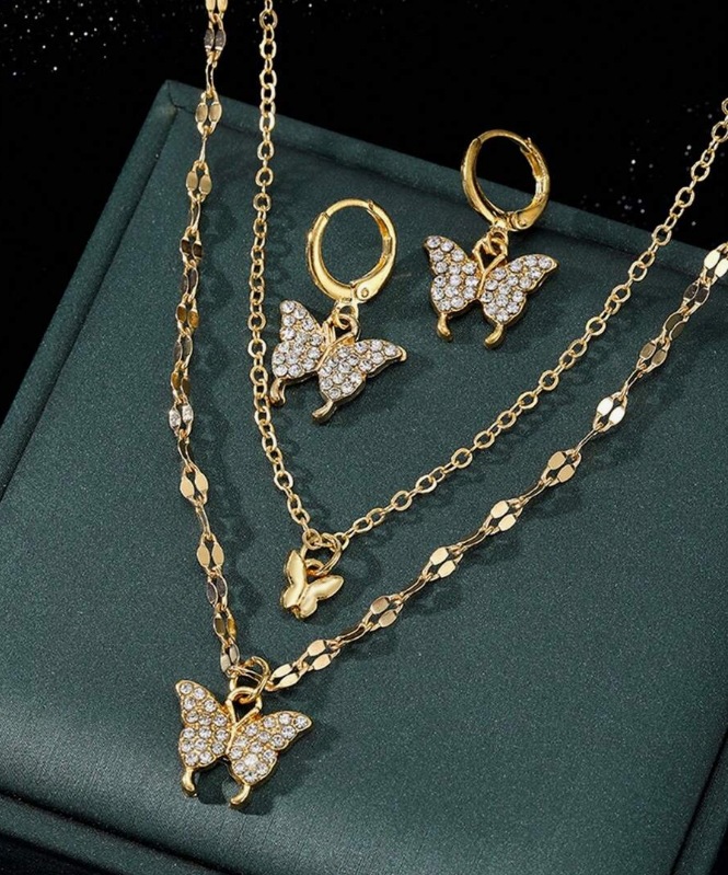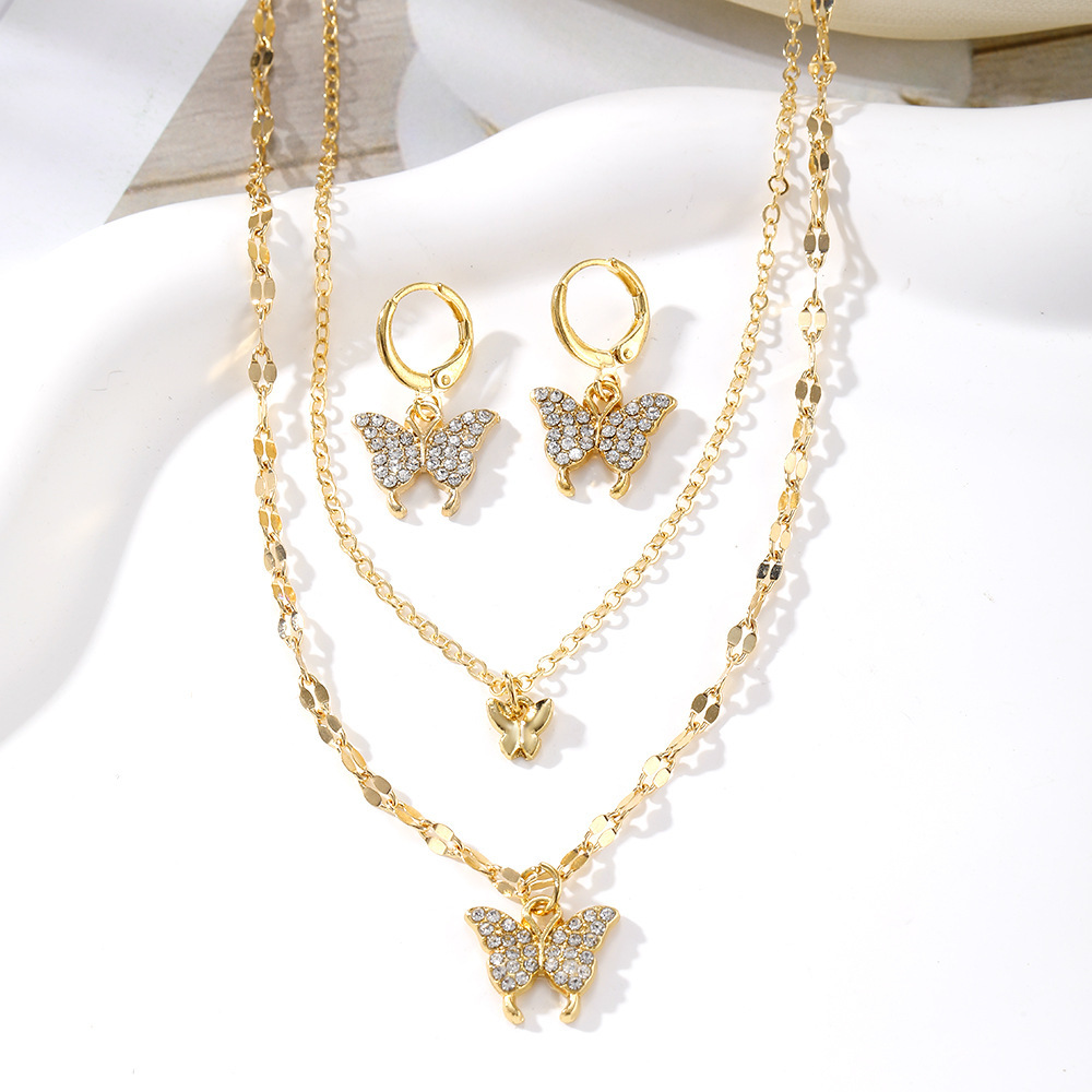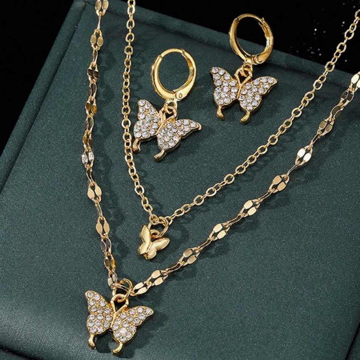 Conjunto De 3 Peças De Brincos E Colar De Borboleta , Joias Minimalistas De Zircônia , Corrente Com Pingente De Camada D