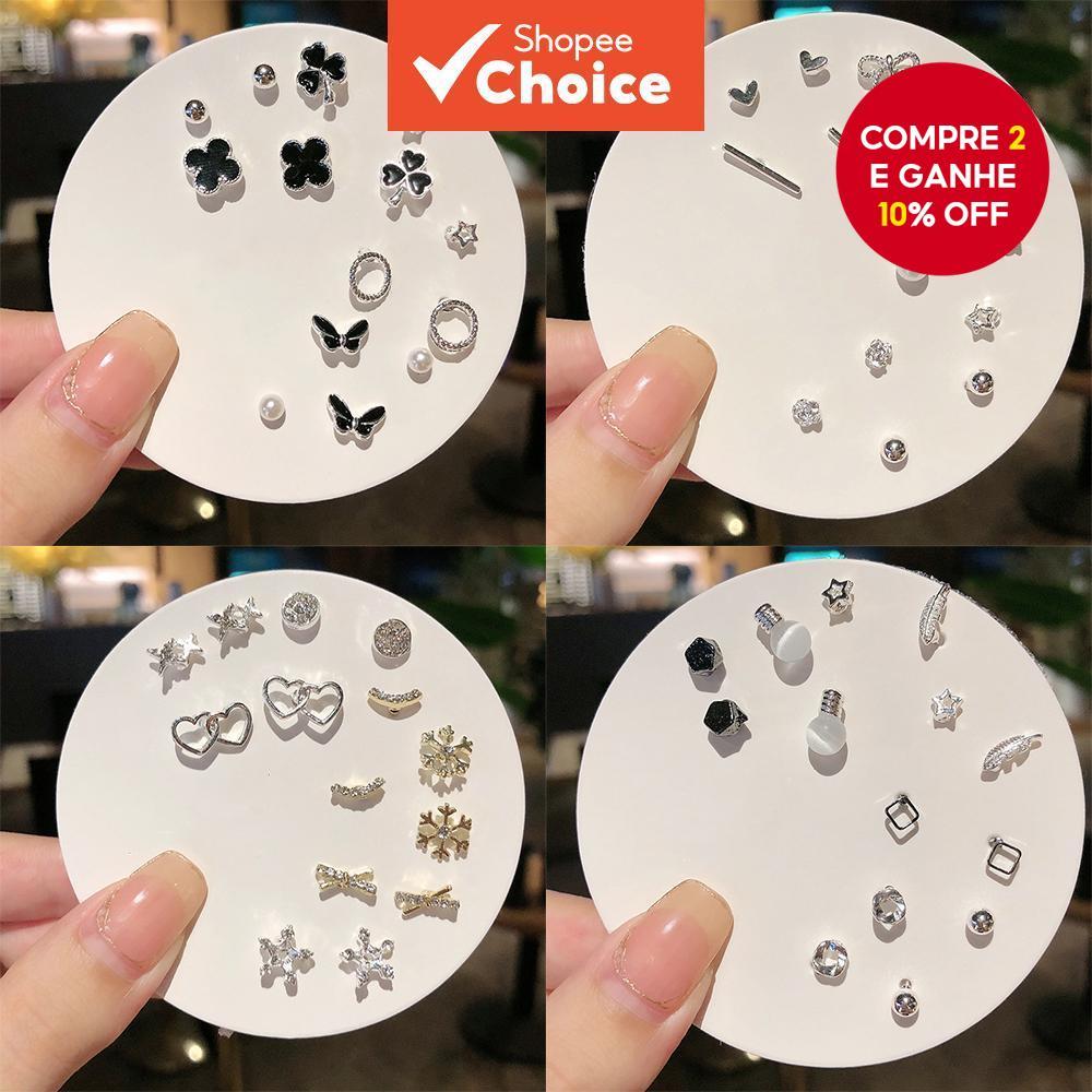 Conjunto De 7 Pares De Brincos Semanais Requintados Da Moda Com Trevo De Quatro Folhas E Laço Para Mulheres