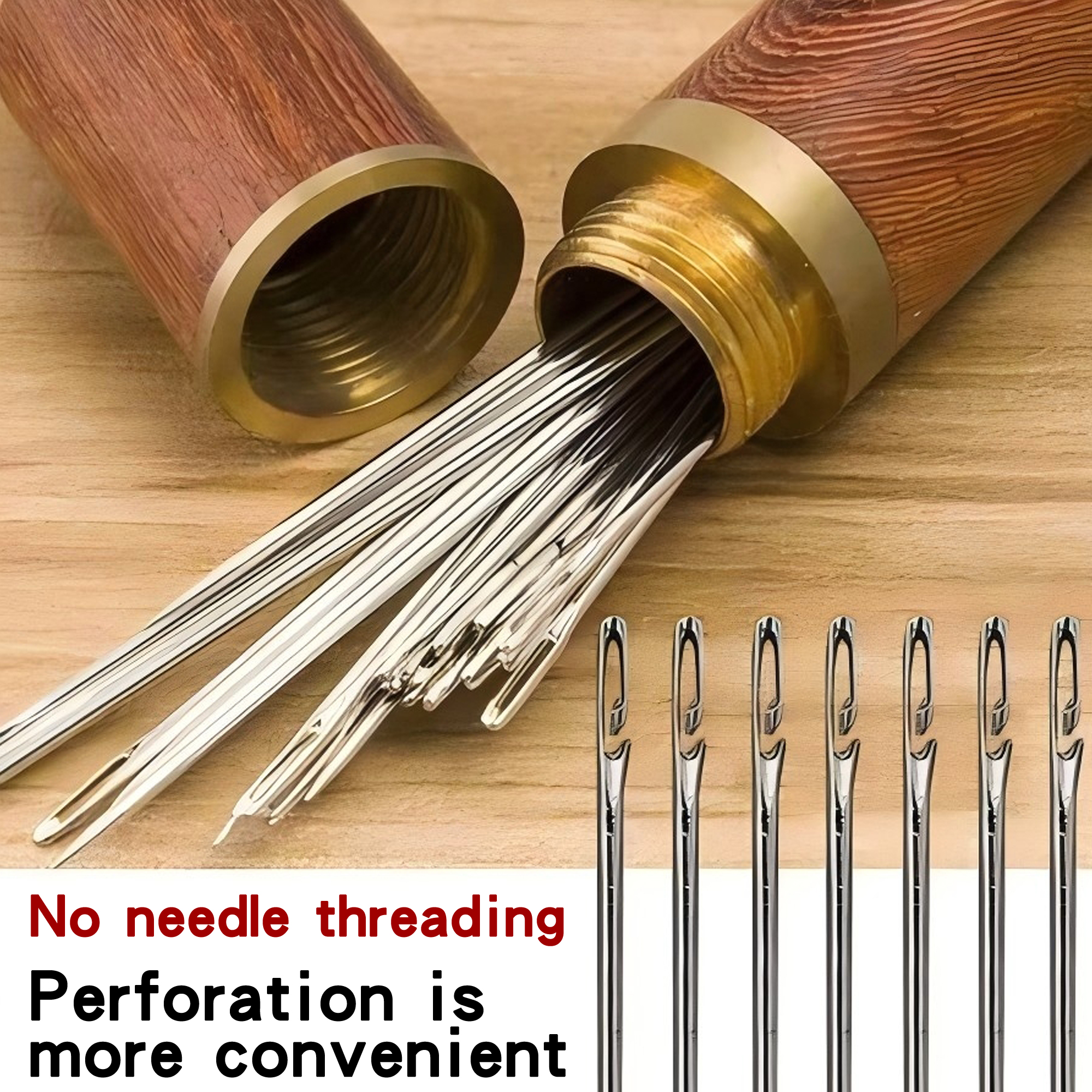 Conjunto De Agulhas De Costura Com Furo Lateral De 30 Unidades | Garrafa De Armazenamento De Madeira , Ferramenta De Art