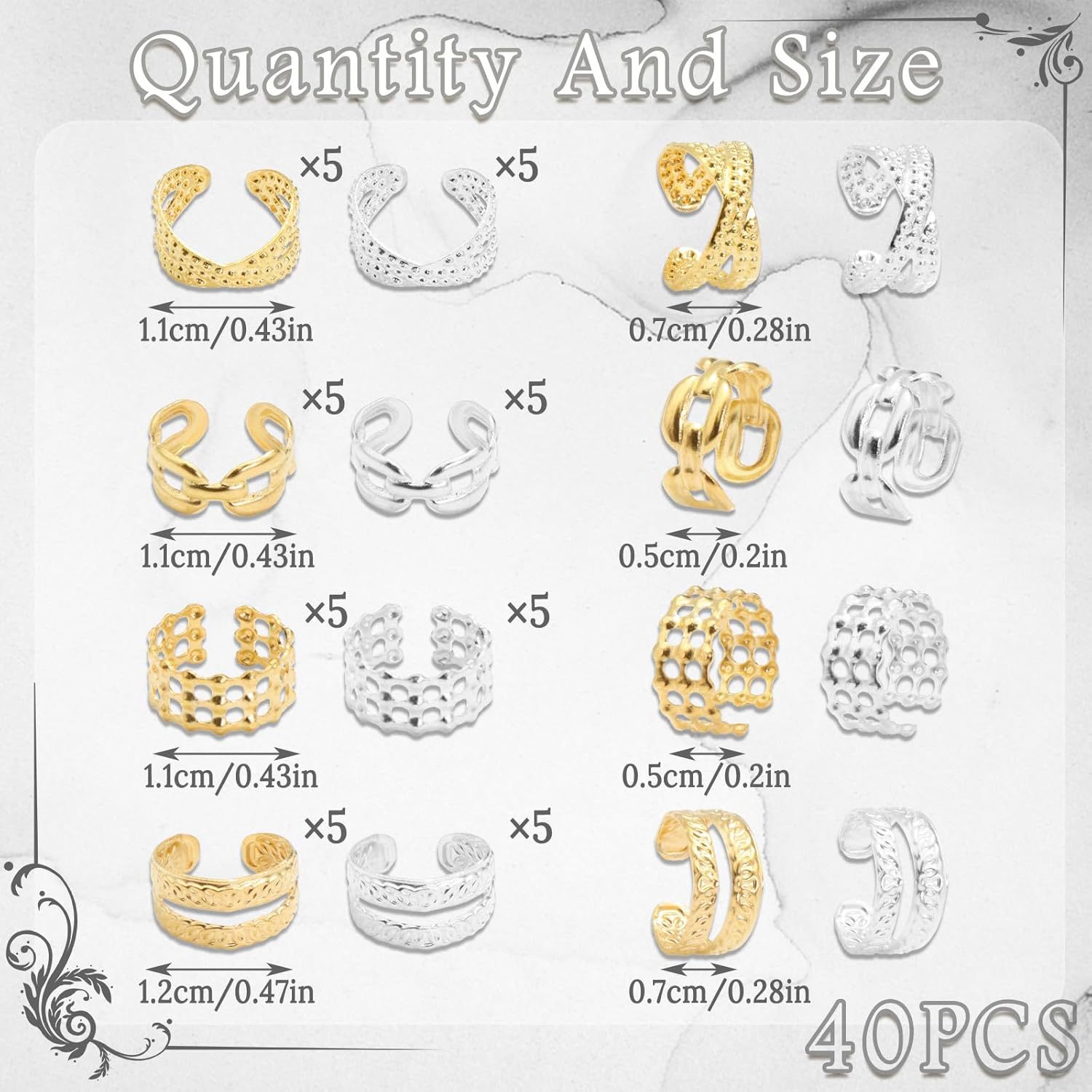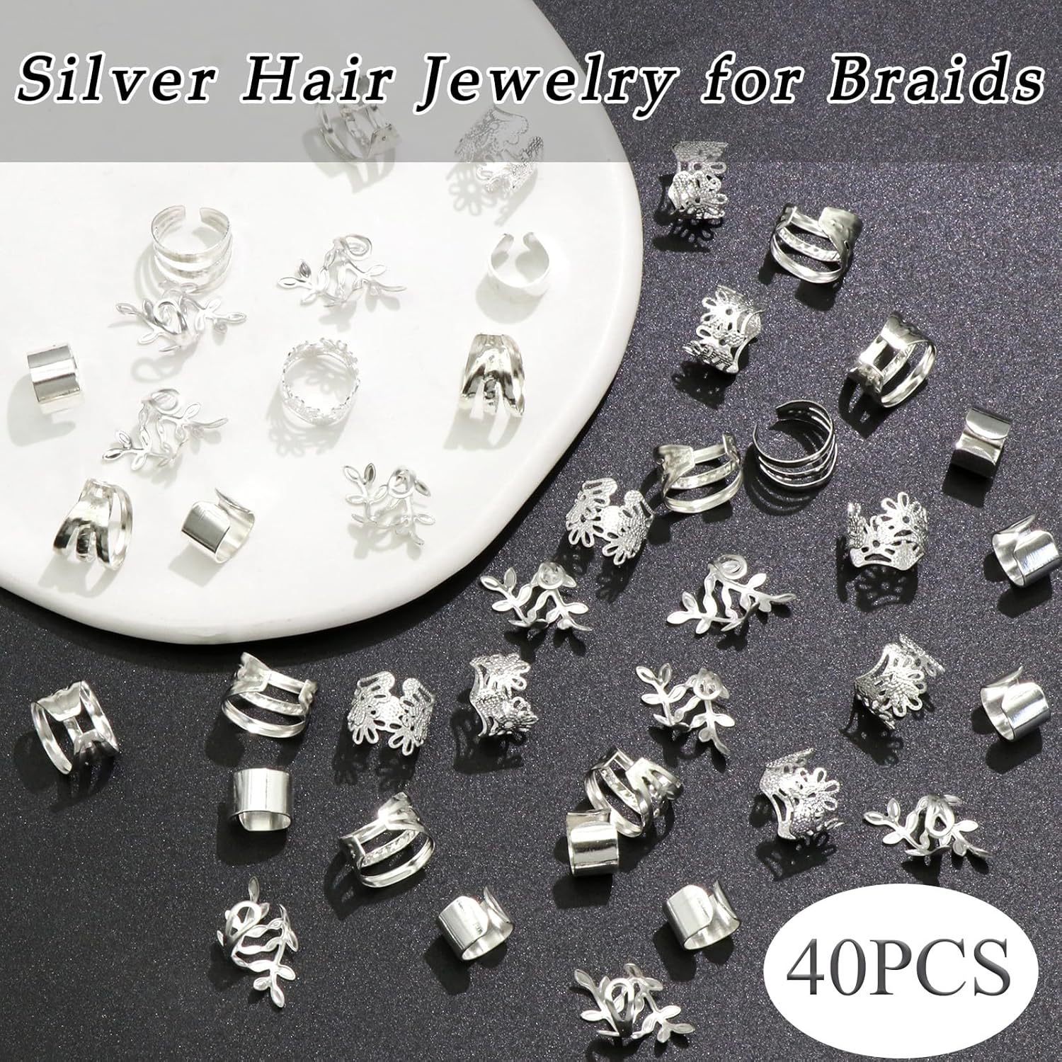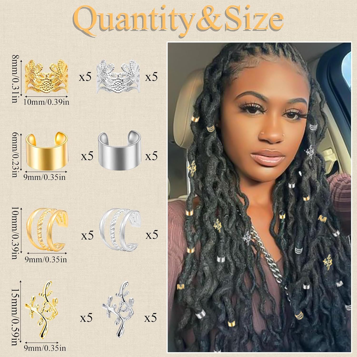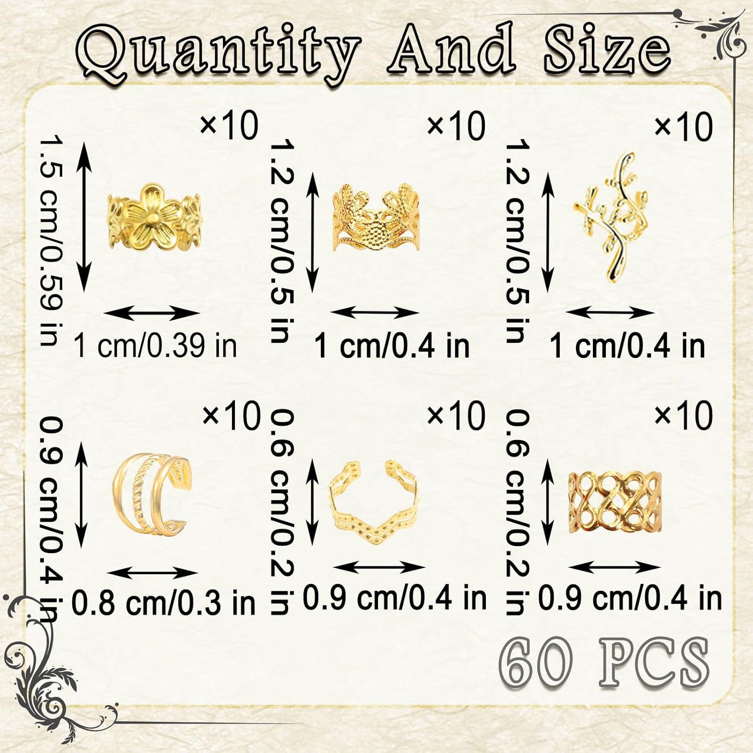 Conjunto De Anéis De Cabelo 60 Peças Para Tranças Ouro Prata Dreadlock Acessórios De Extensão