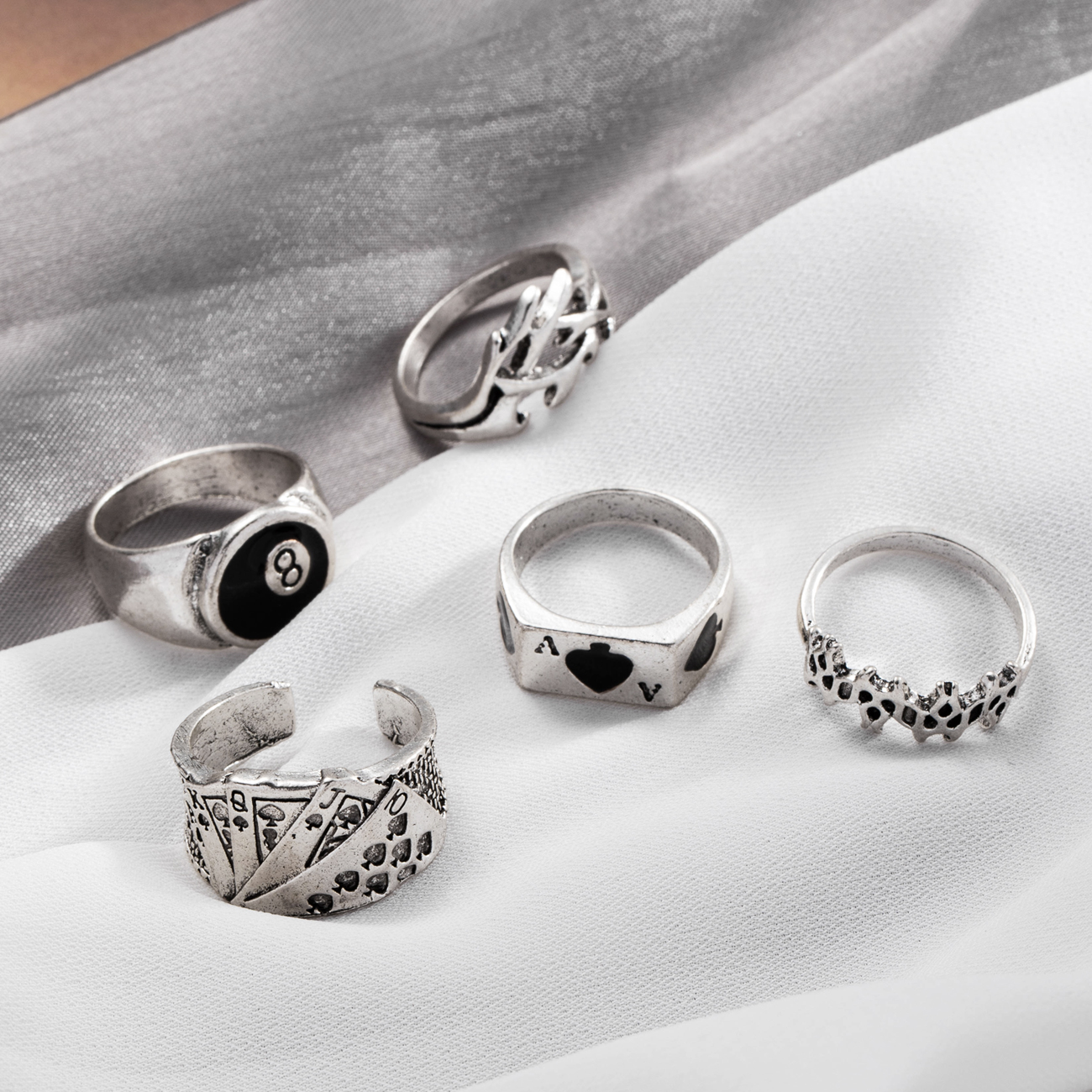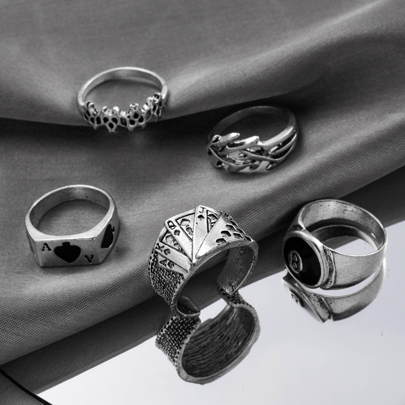 Conjunto De Anéis Punk Hip-Hop , Joias Retrô Ajustáveis Para Casal , Acessórios Elegantes De Moda Europeus E Coreanos