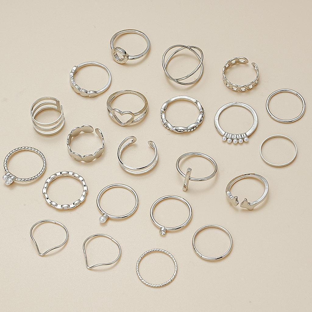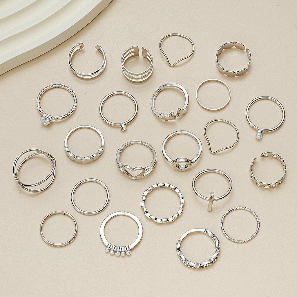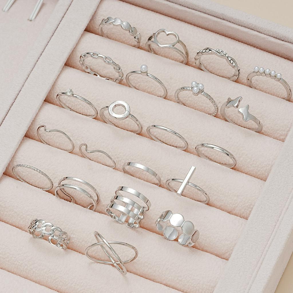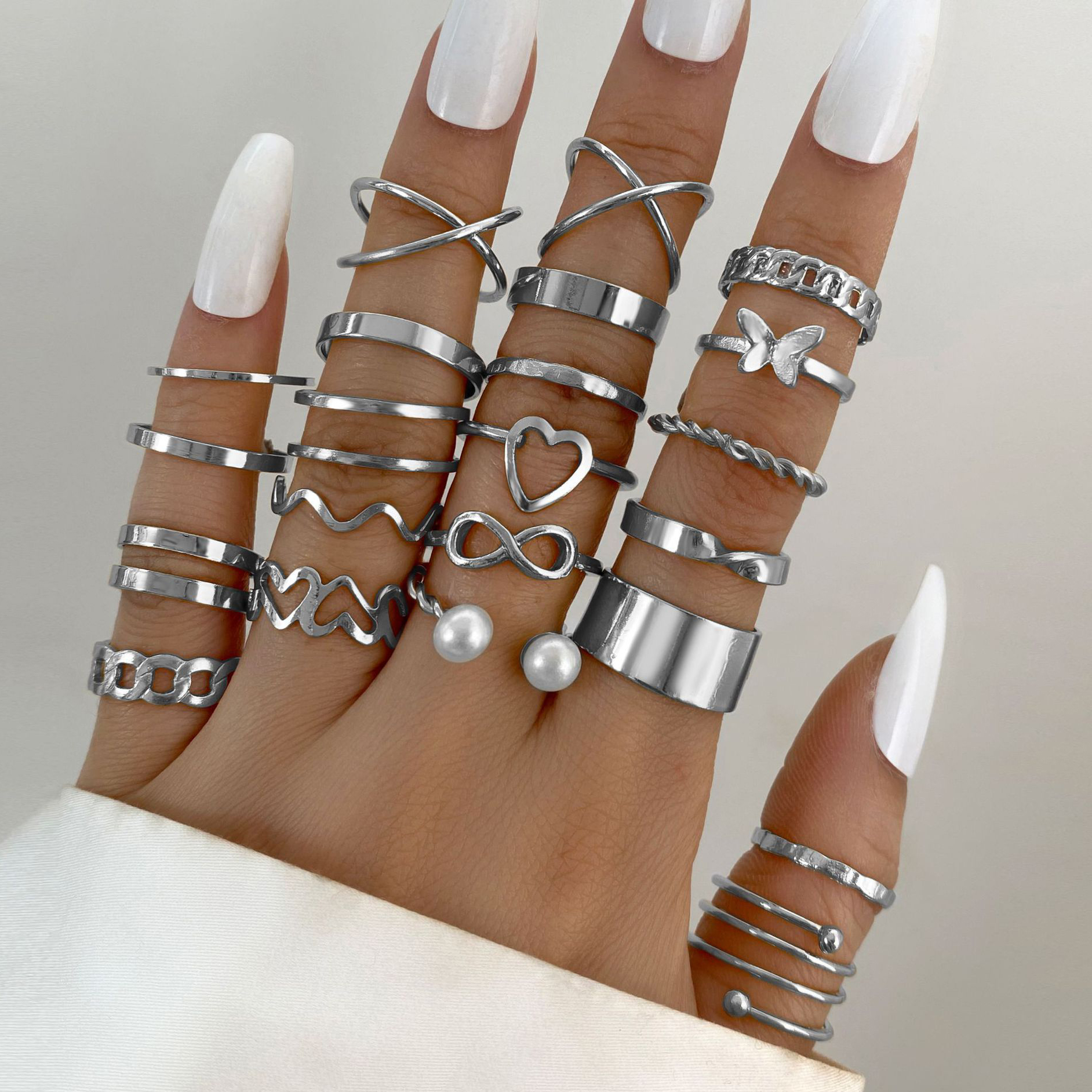 Conjunto De Anel De Borboleta Com Cruz De Coração , 22 Peças , Imitação De Pérola , Joias De Prata Para Mulheres , Homen