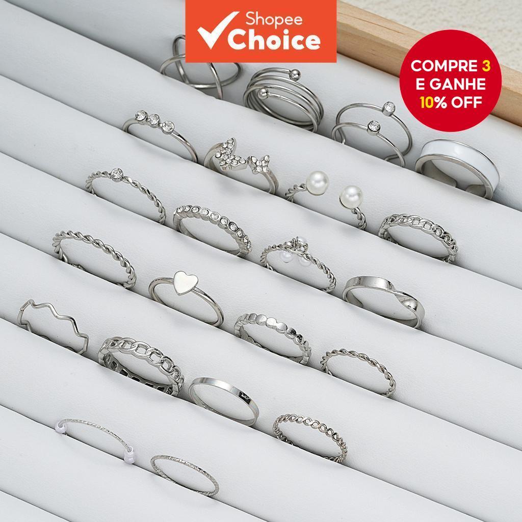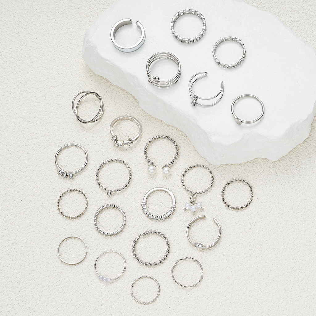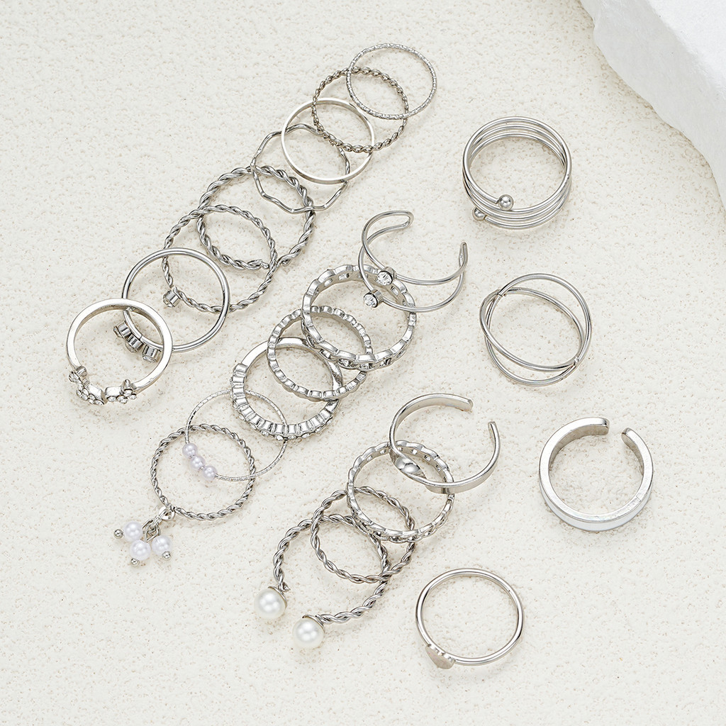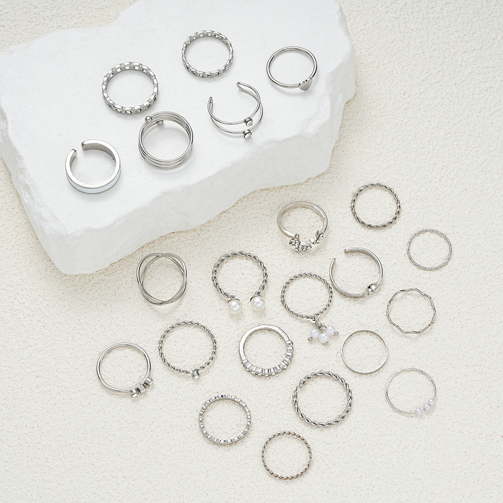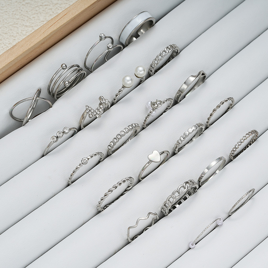 Conjunto De Anel De Coração Borboleta 22 Peças Com Pérola Cruzada E Joias De Prata De Cristal Para Mulheres
