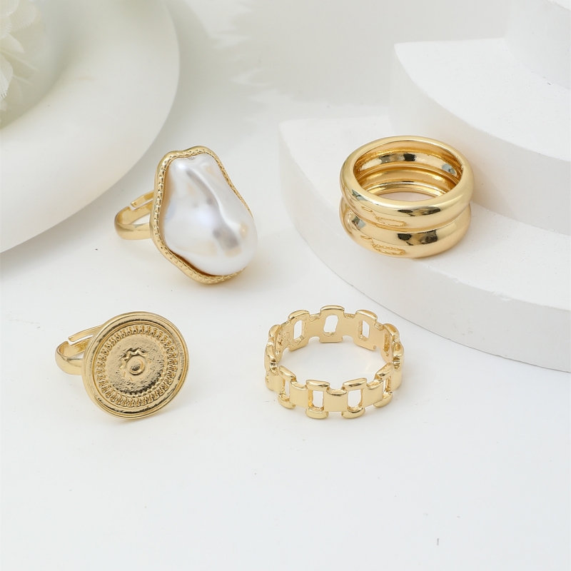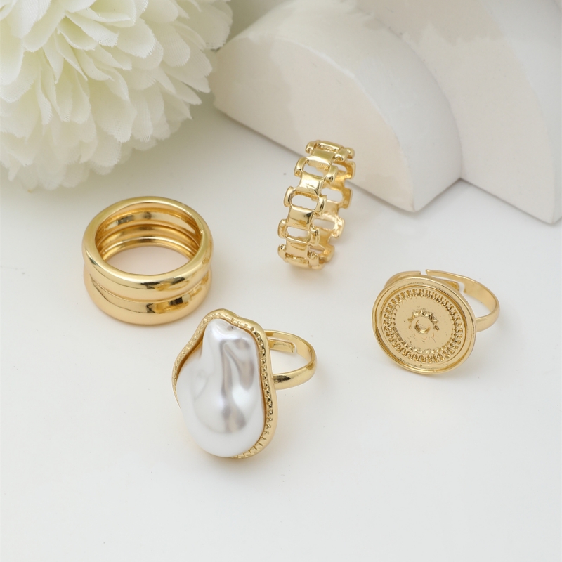 Conjunto De Anel Feminino De Pérola Geométrica Elegante , 4 Peças , Joias Elegantes Para Fashionistas Modernos