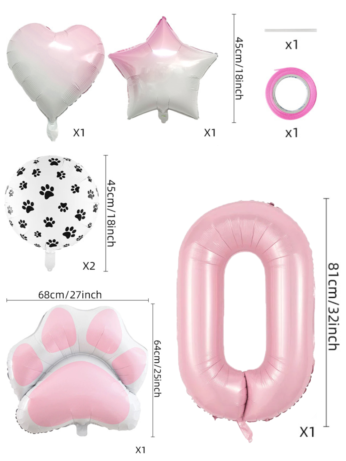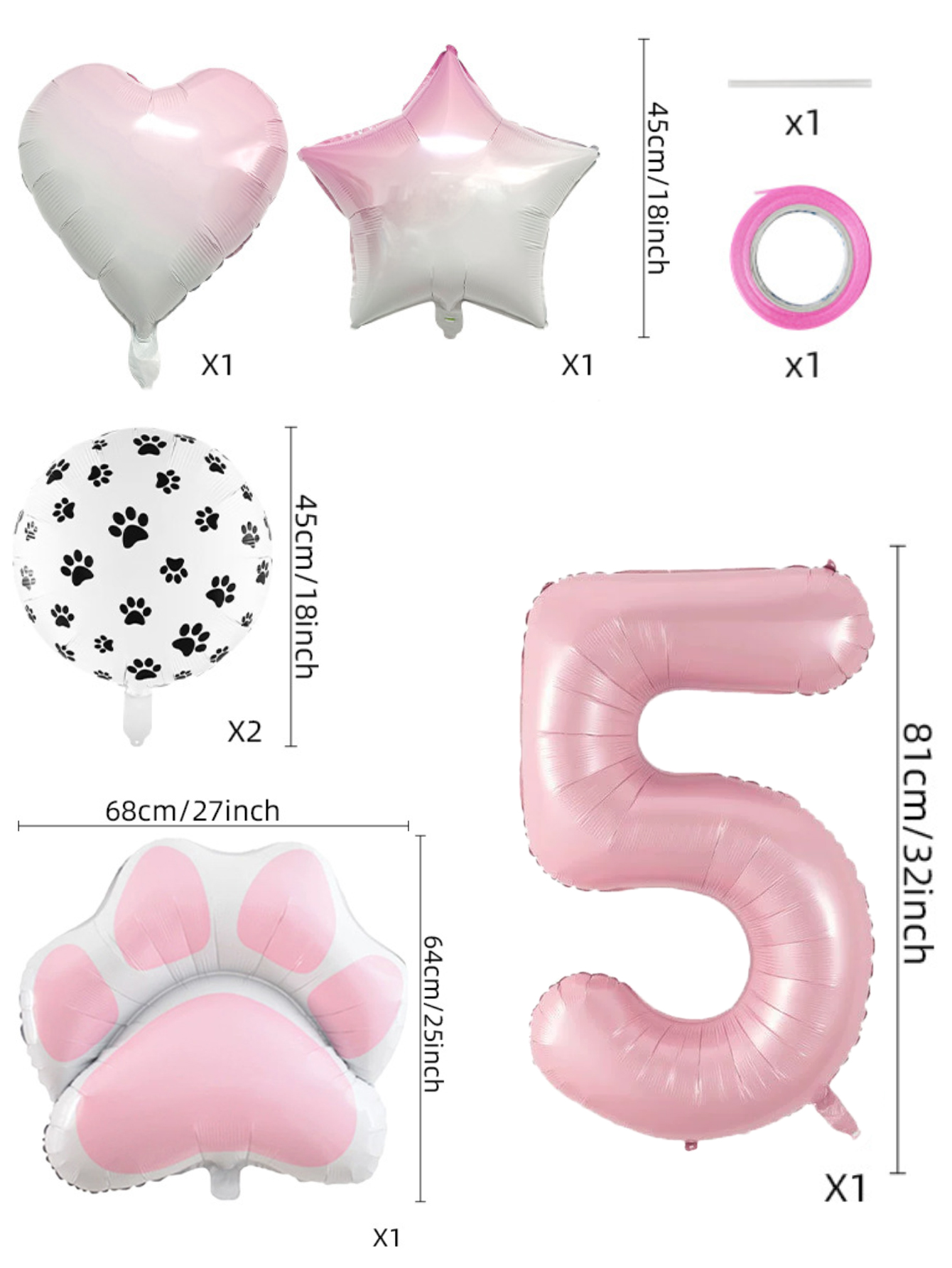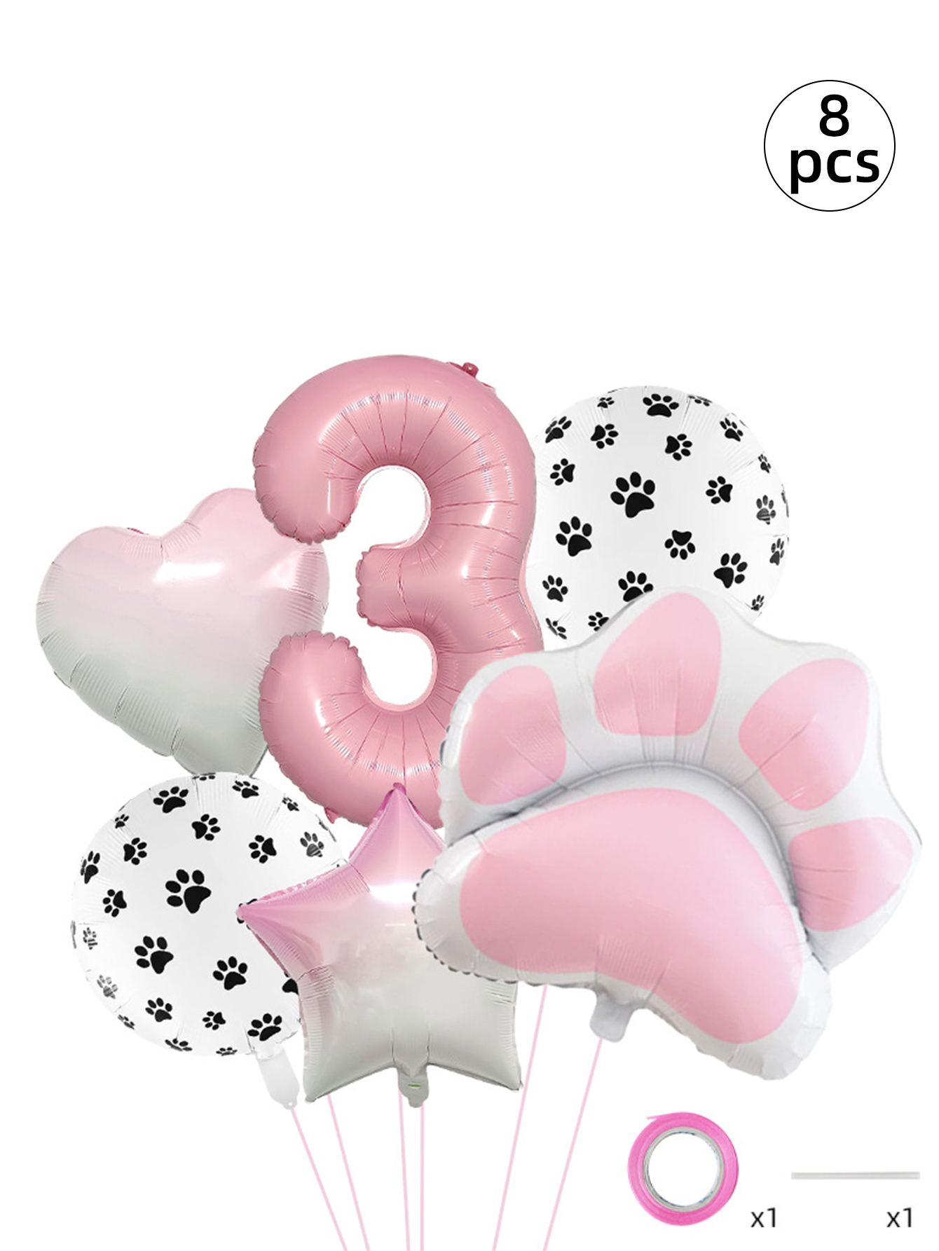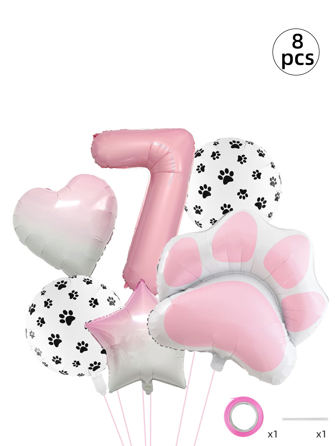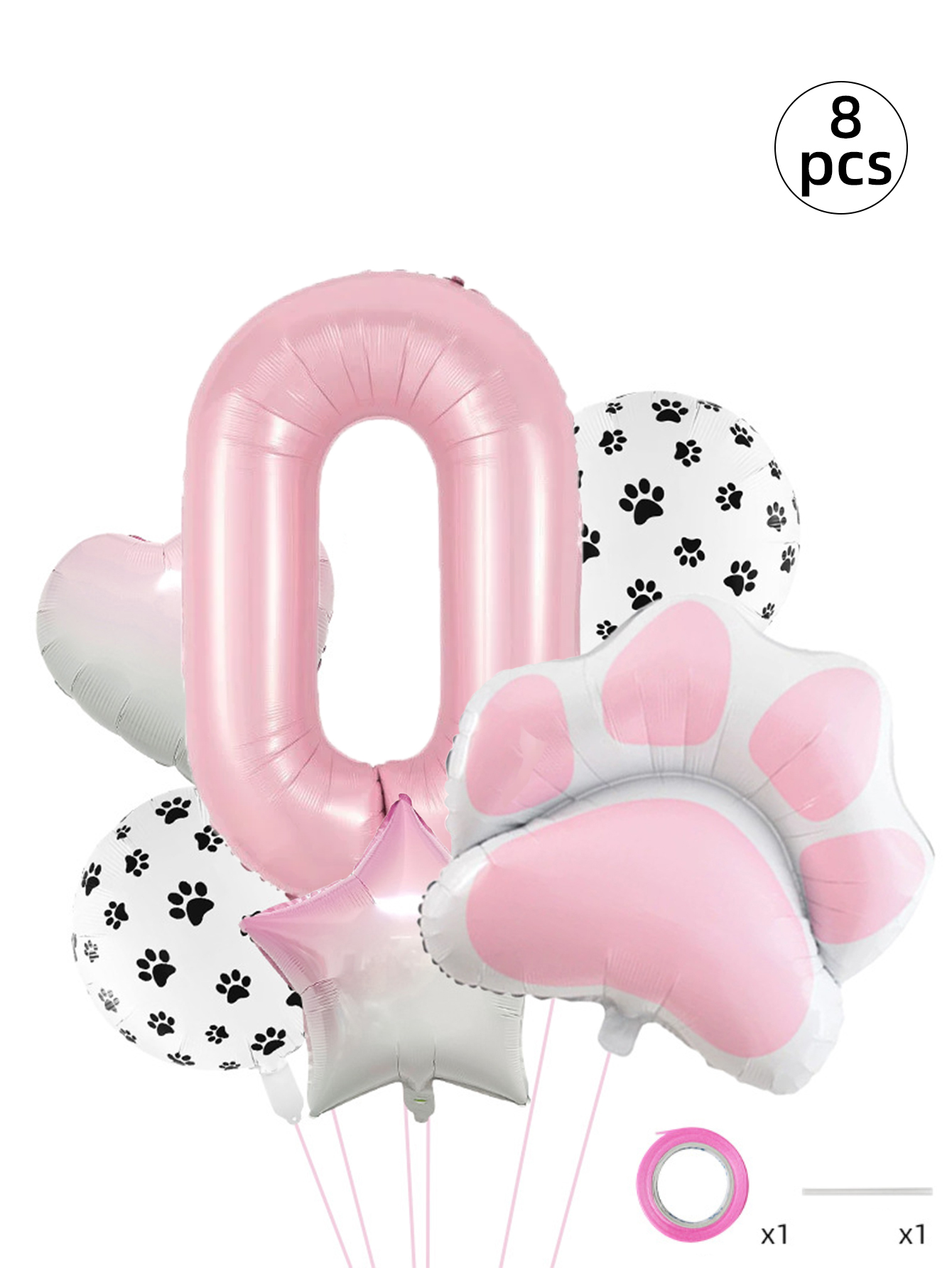 Conjunto De Balão De Folha De Festa De Animal Rosa De Oito Peças Com Decorações De Coração De Estrela Estampa De Pata