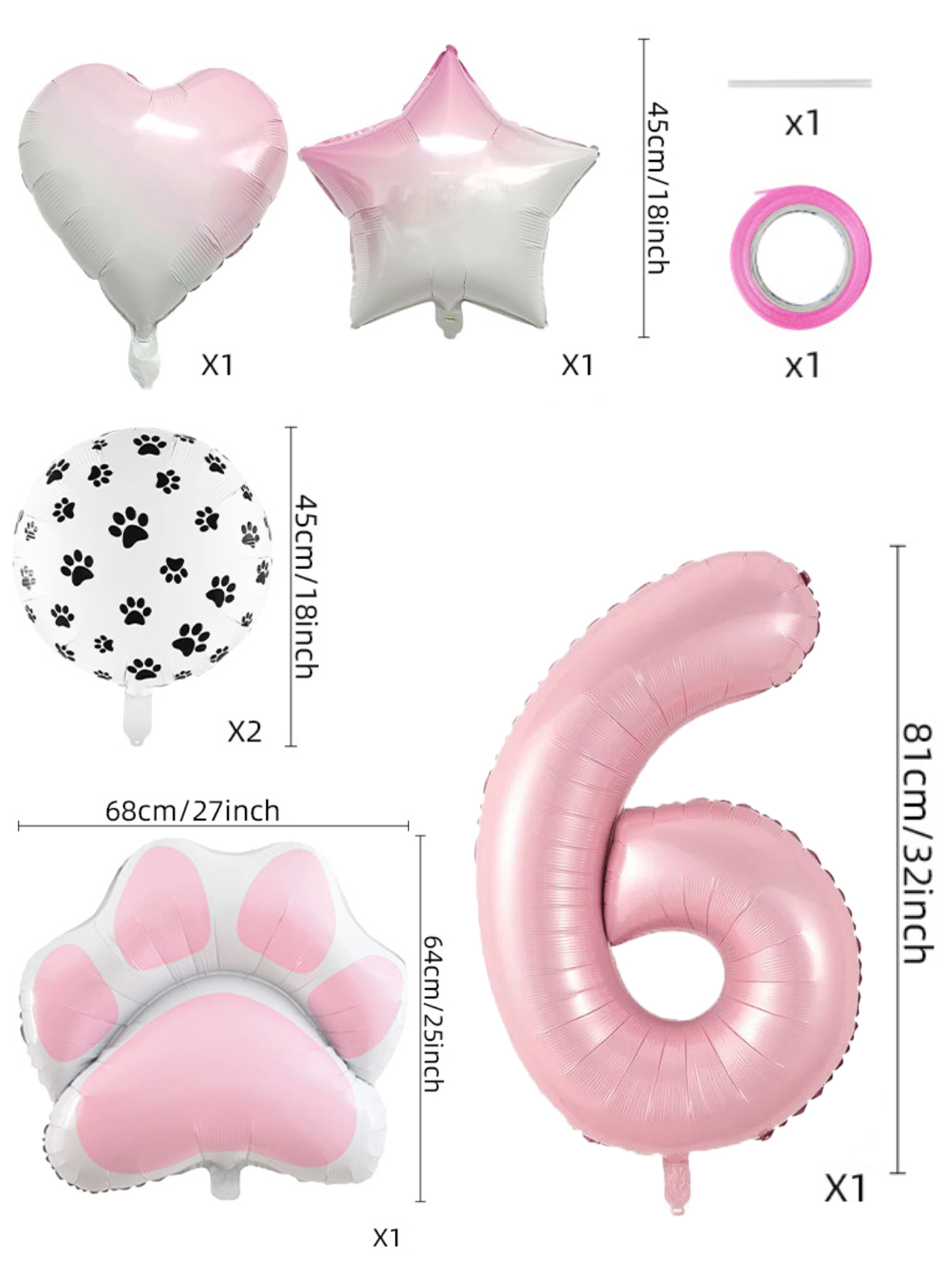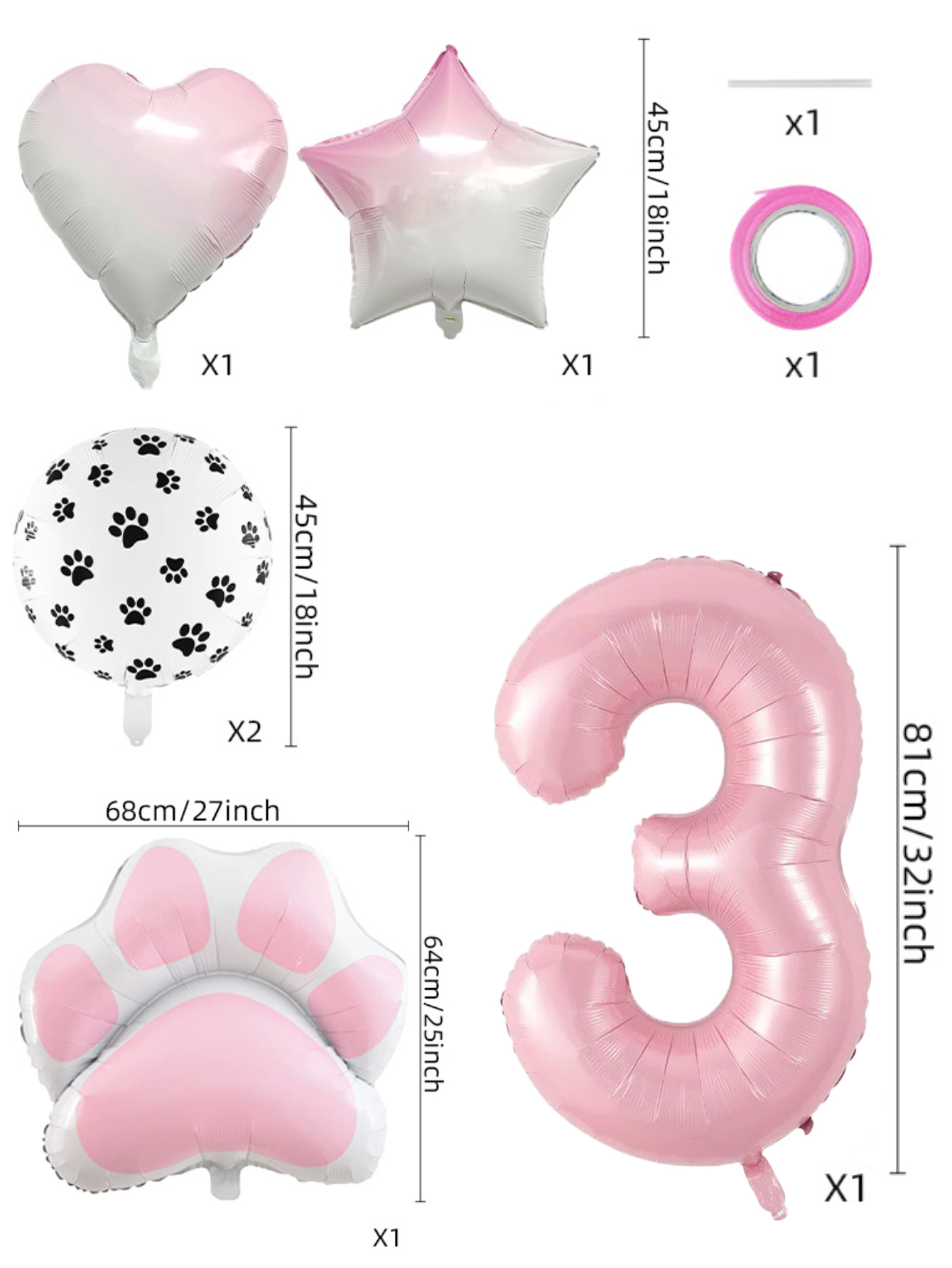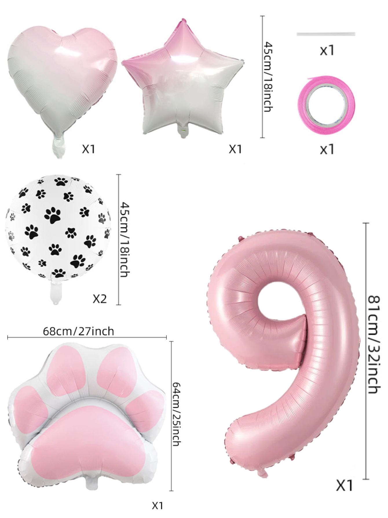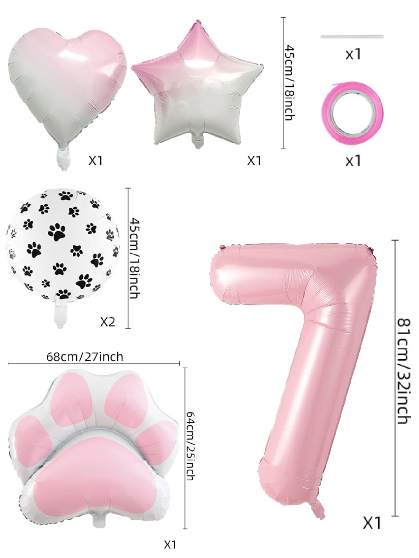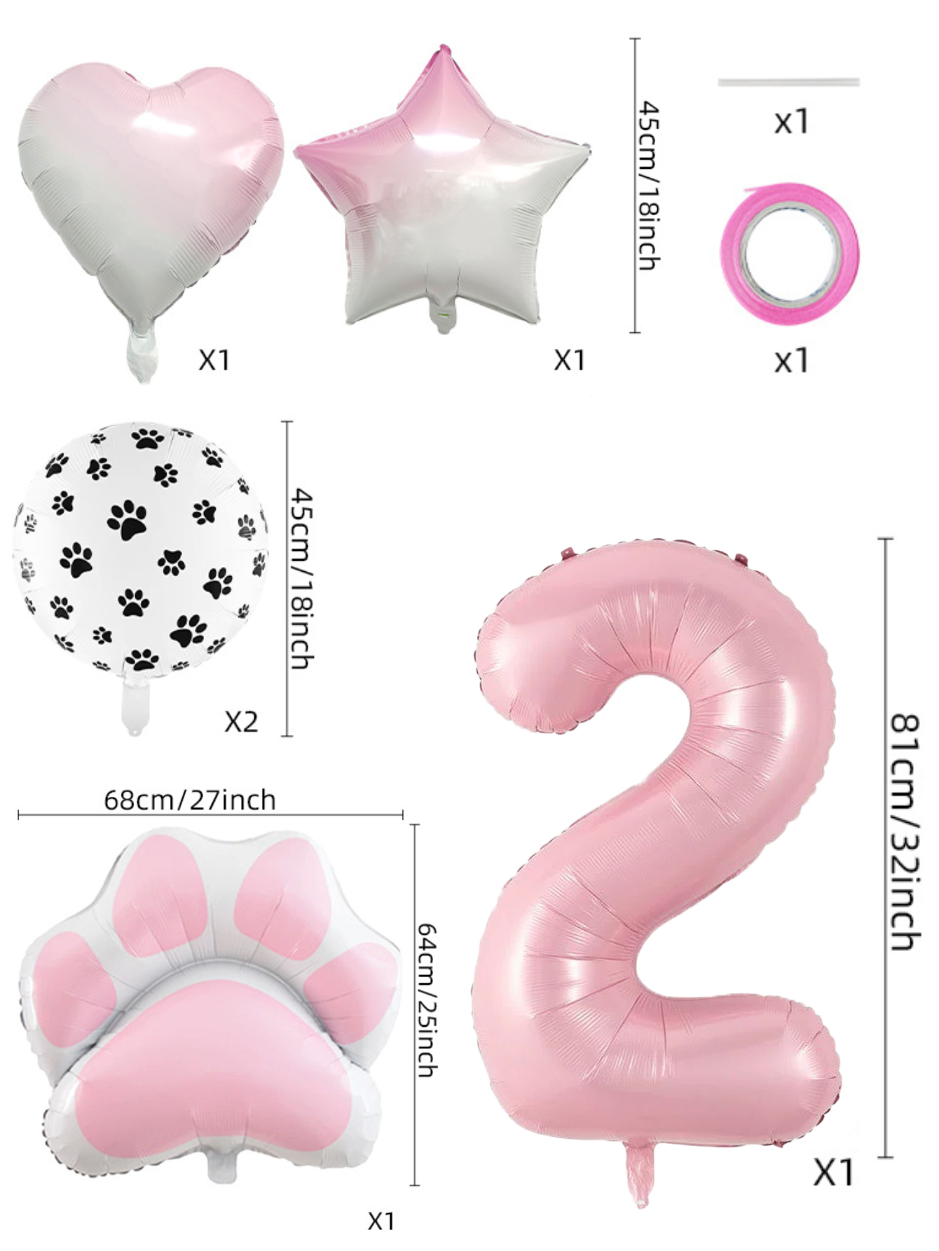 Conjunto De Balão De Folha De Festa De Animal Rosa De Oito Peças Com Decorações De Coração De Estrela Estampa De Pata
