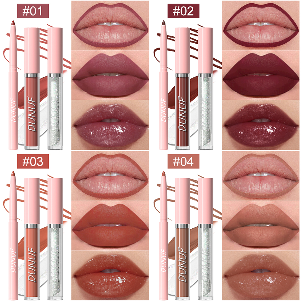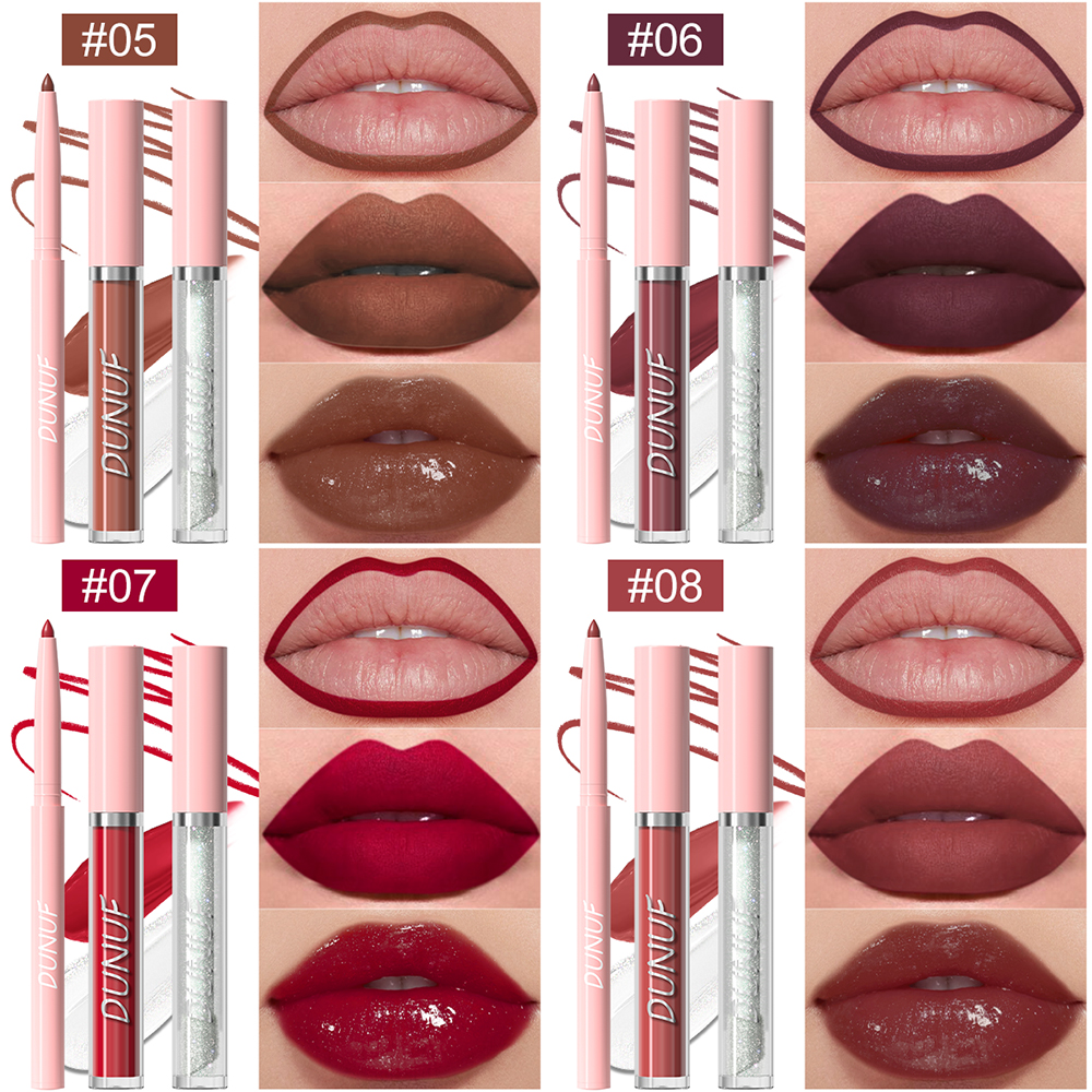 Conjunto De Brilho Labial E Delineador DUNUF Velvet Matte-2 Em 1 À Prova D'água , Resistente Ao Suor , Batom Líquido De