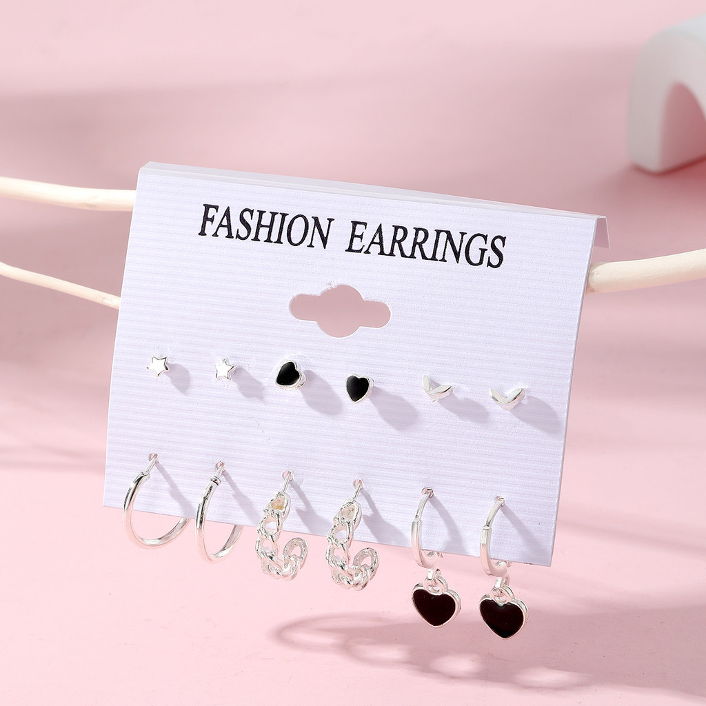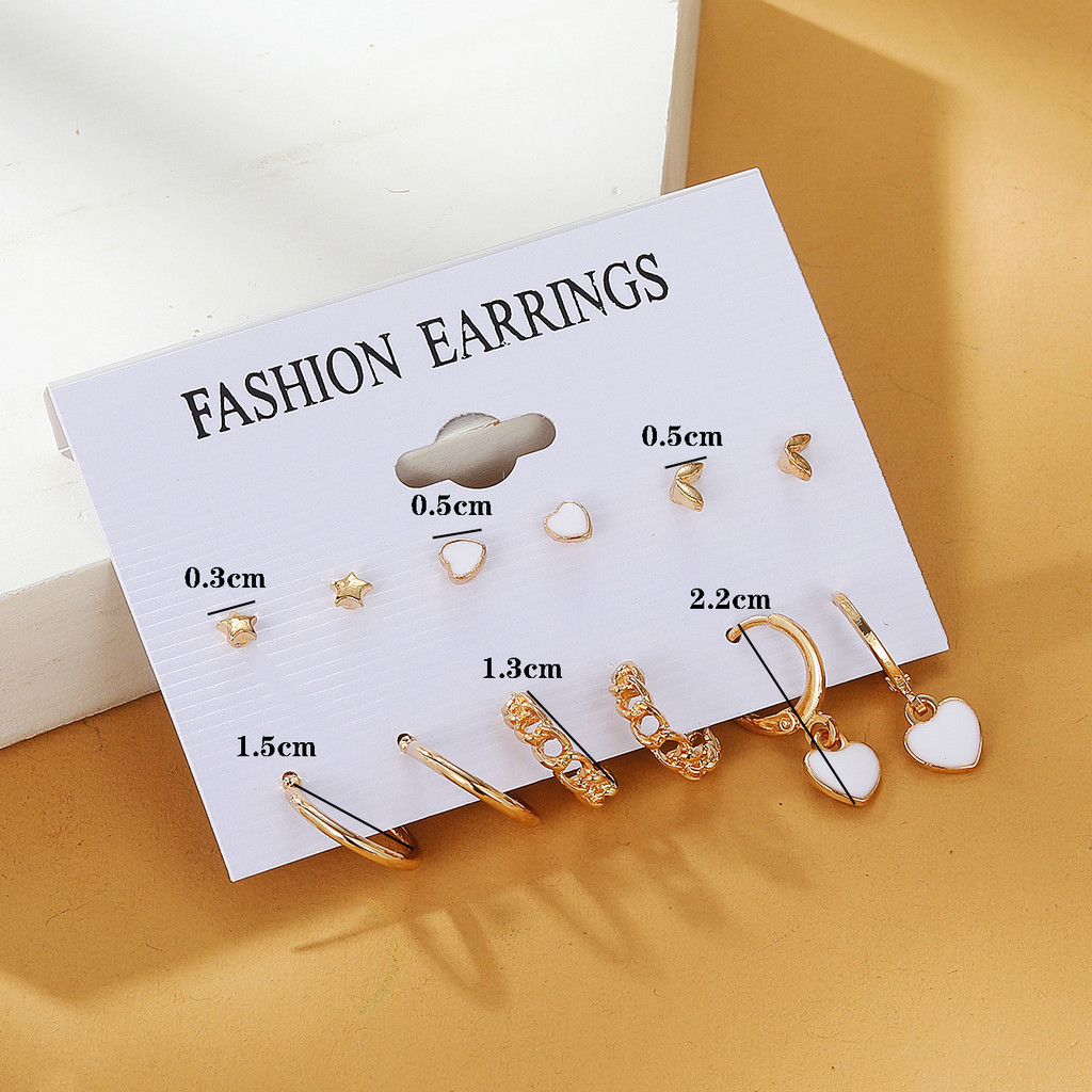 Conjunto De Brincos De Coração Estrela De 6 Unidades , Joias Da Moda Para Presente De Uso Diário