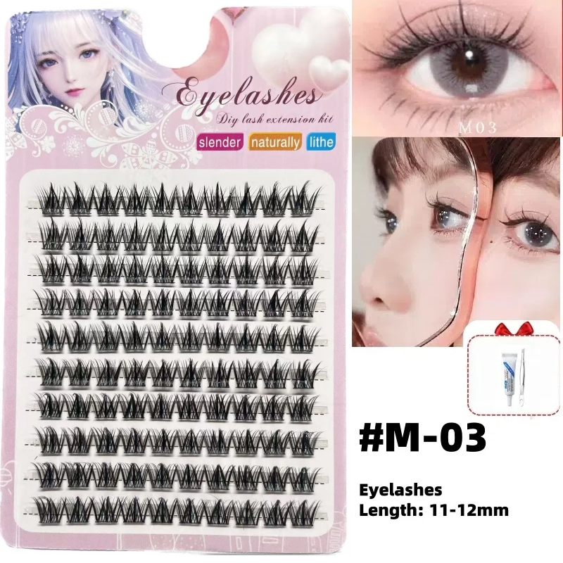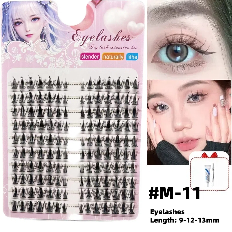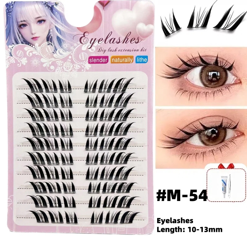Conjunto De Cílios Postiços Com Pinça E Cola , Estilo Misturado Natural De 10 Fileiras Para Festa Maquiagem Diária
