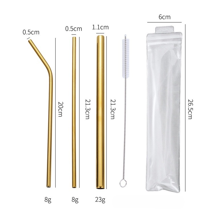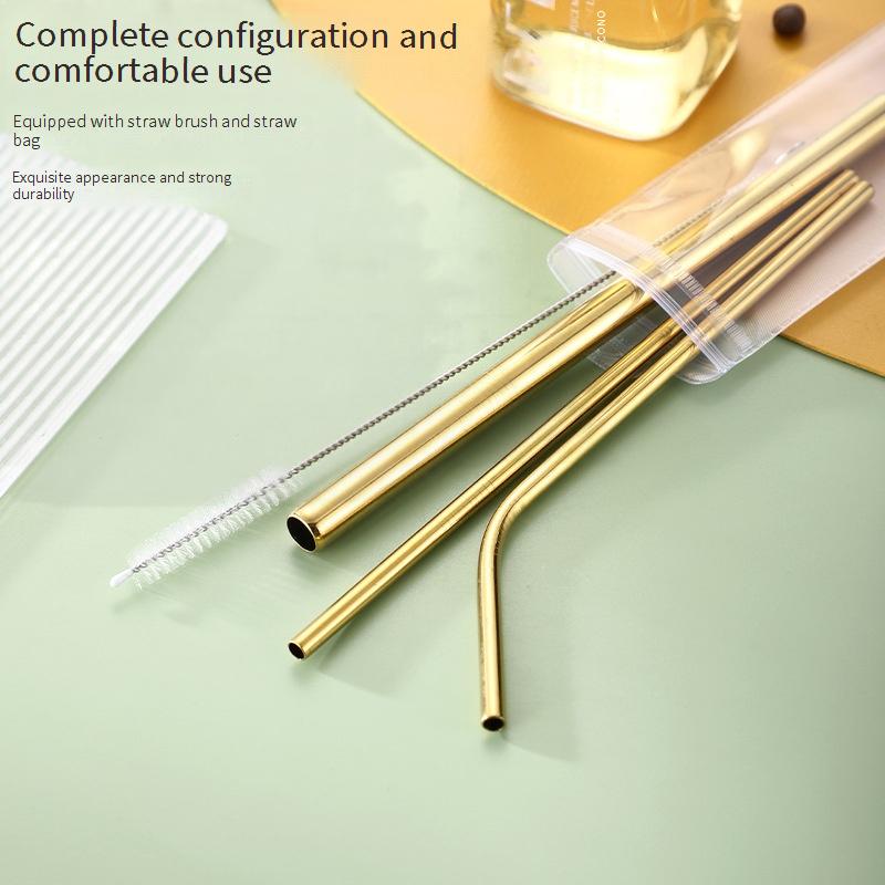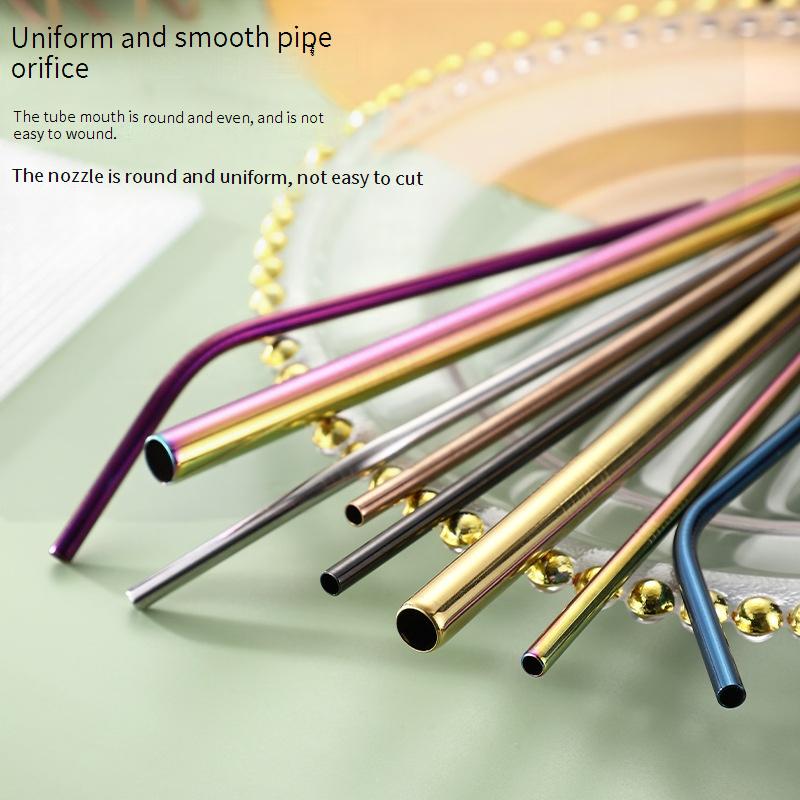 Conjunto De Canudos De Aço Inoxidável , Metal , Curva Reta , Reutilizáveis , Laváveis
