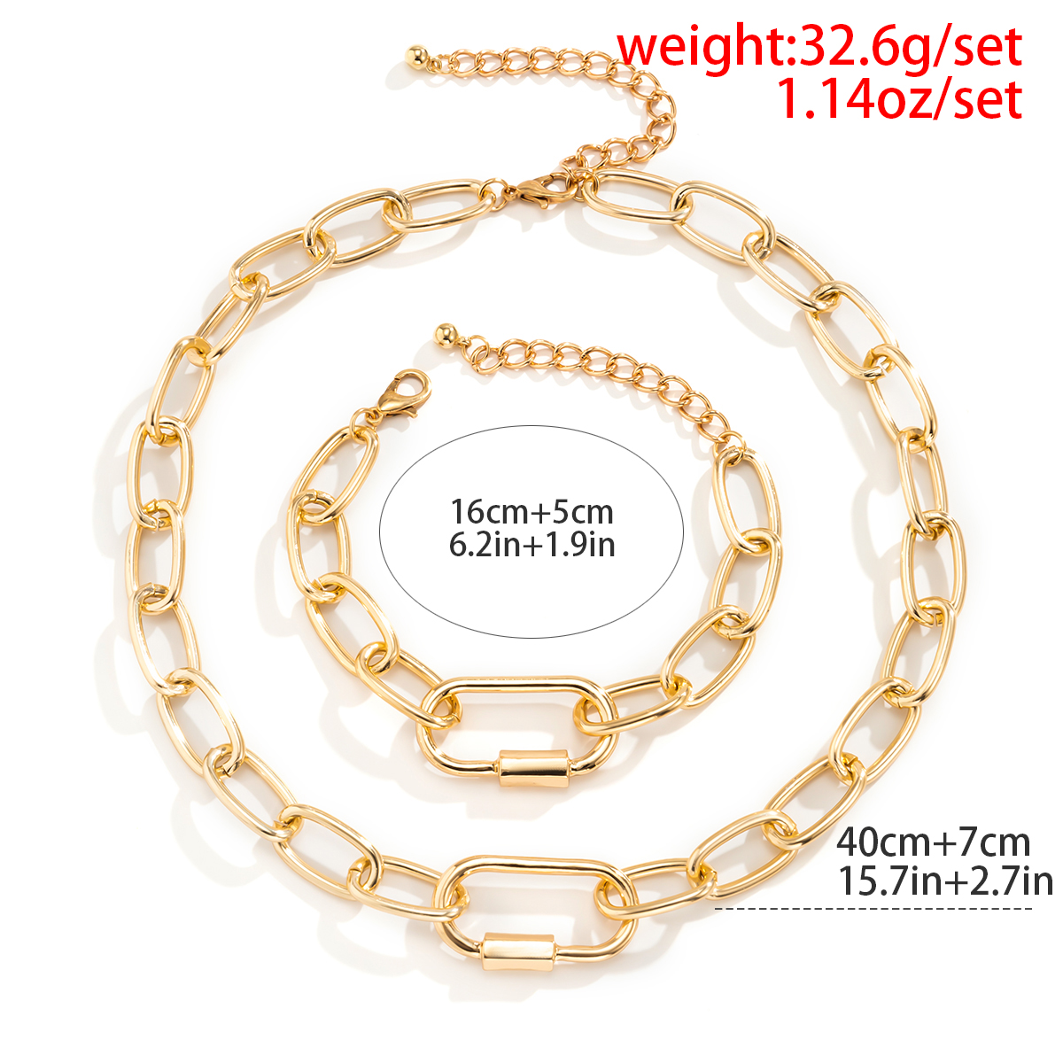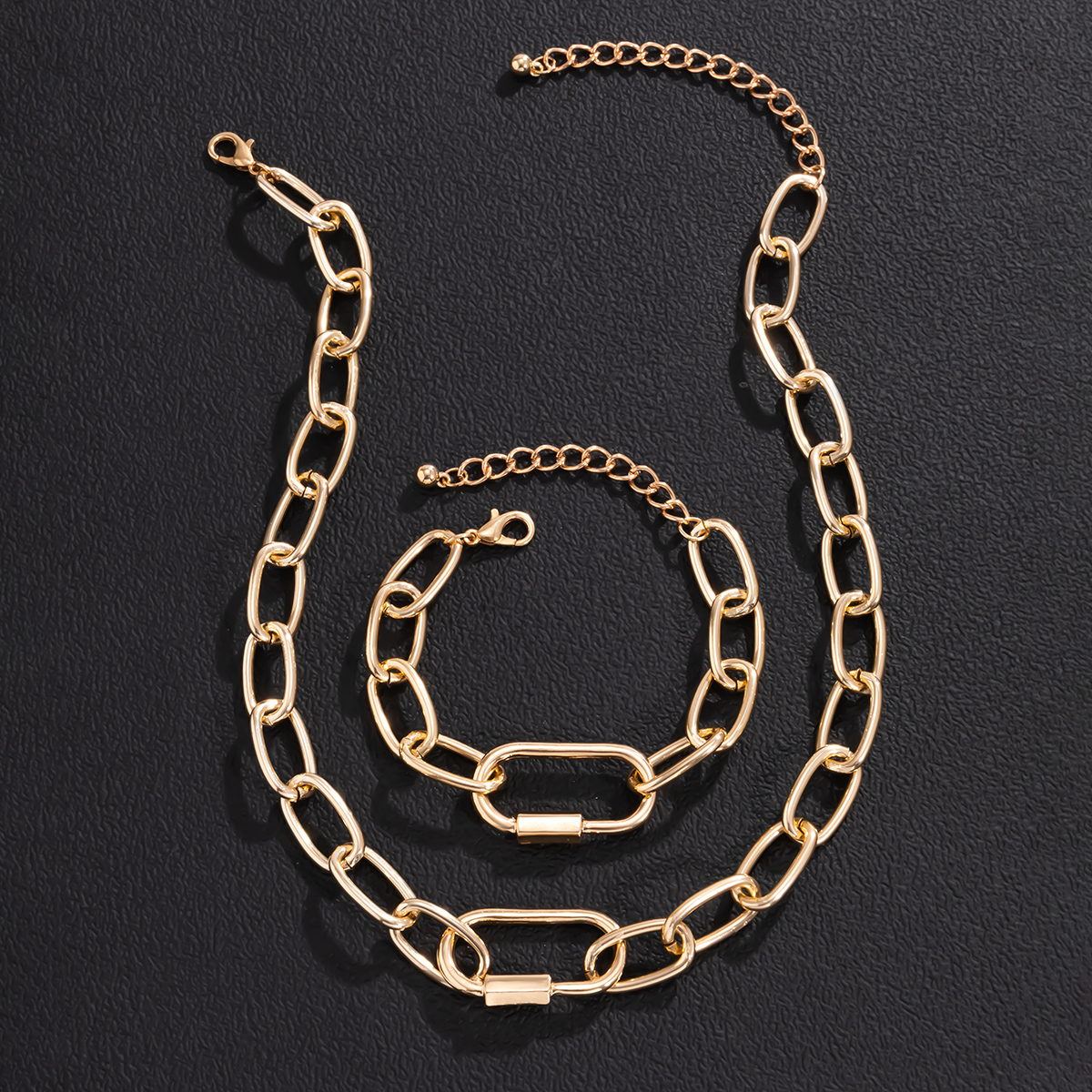 Conjunto De Corrente Punk Moderno – Gargantilha Robusta E Pulseira Para Mulheres , Joias De Metal Grosso , Presente