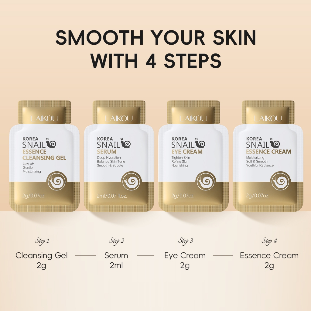 Conjunto De Cuidados Com A Pele De 4 Peças LAIKOU KOREA Snail Mucin | Limpador , Soro , Creme Para Os Olhos E Hidratante