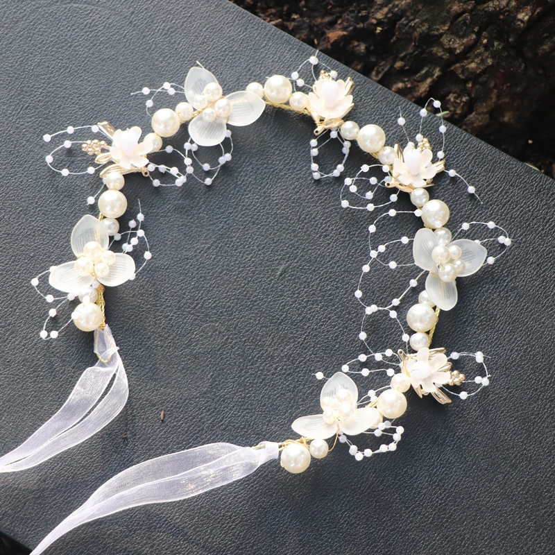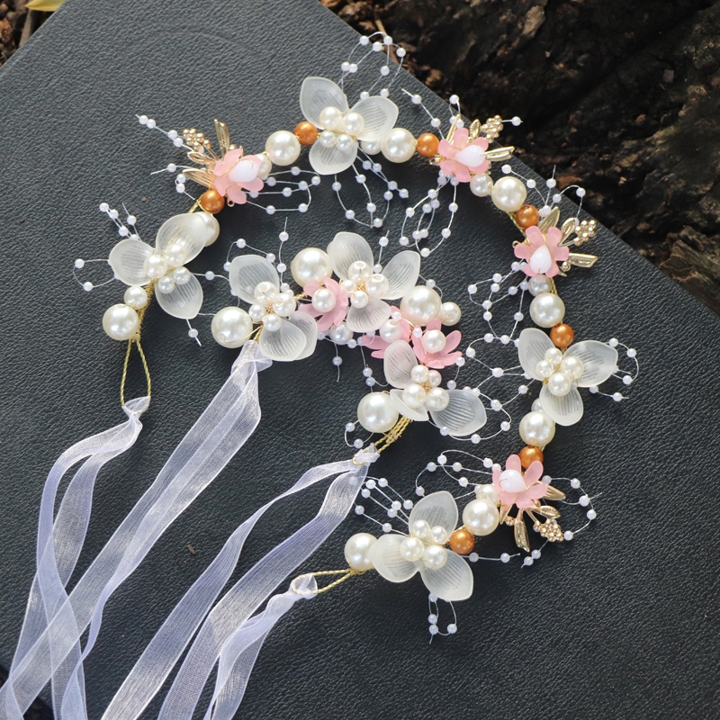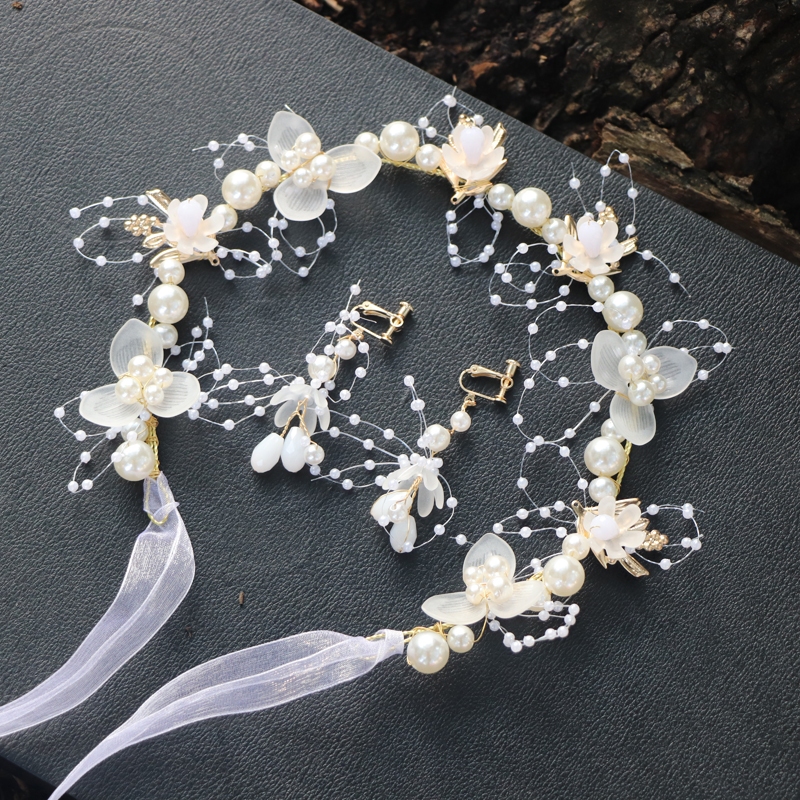 Conjunto De Faixa De Cabeça Com Coroa Floral Infantil-Tiara De Pérola , Flor De Pulso E Brincos De Fada Para Meninas De