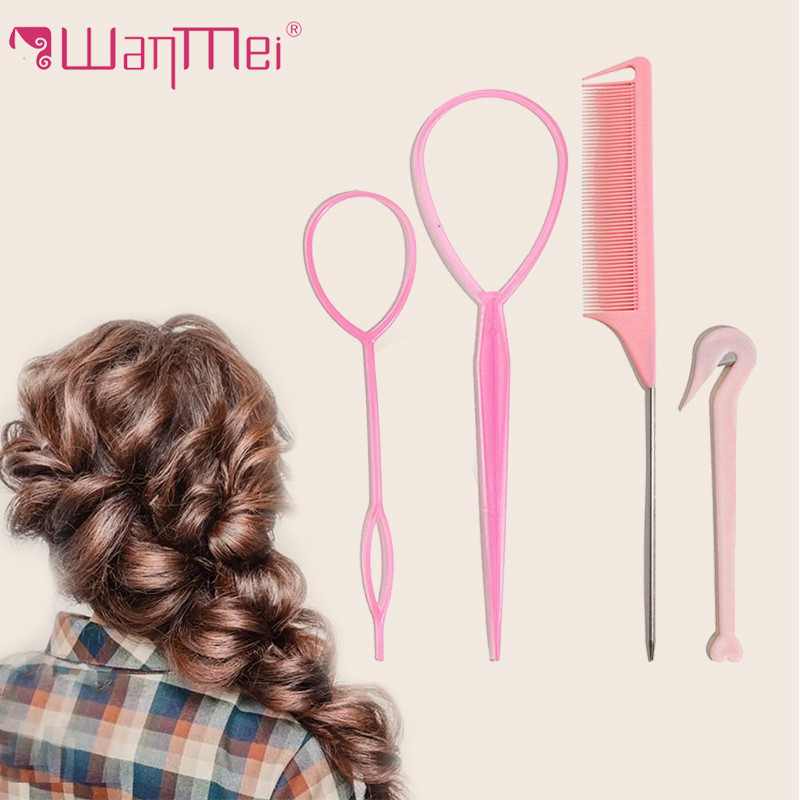 Conjunto De Ferramentas De Cabelo De Quatro Peças , Pente De Dente Fino , Ferramenta De Trança , Coque Conveniente Para