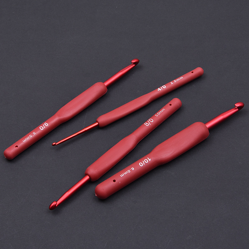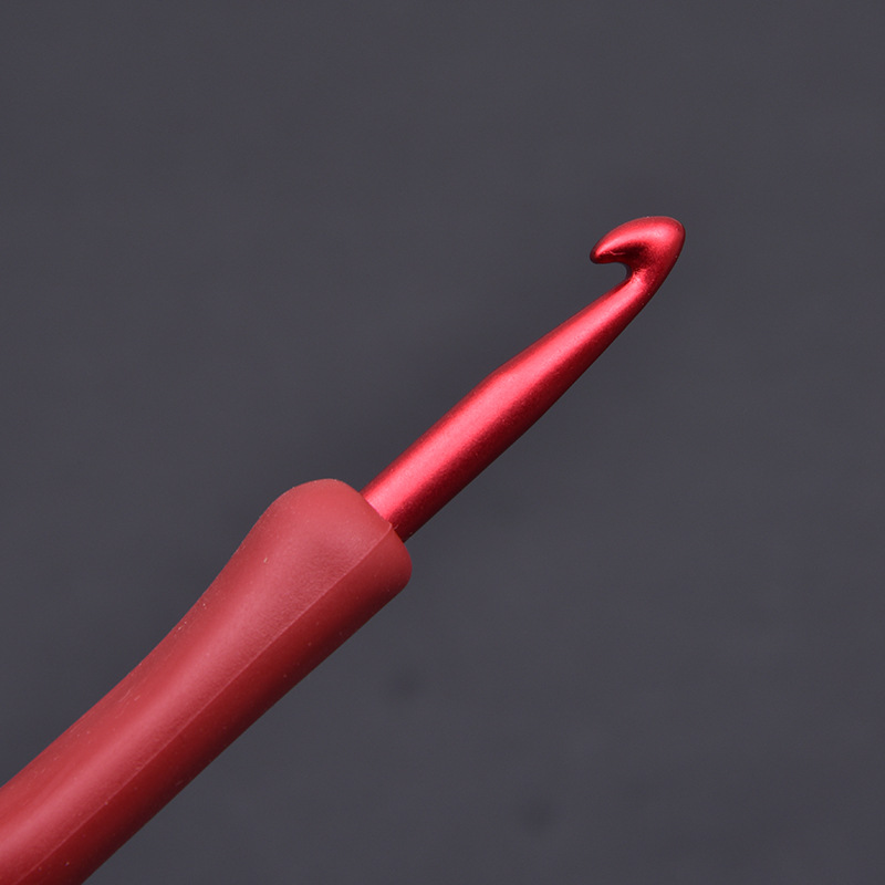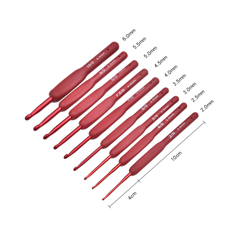 Conjunto De Gancho De Crochê Vermelho De 9 Peças – Agulhas De Tricô De Alumínio DIY Com Alças De Silicone Antiderrapante