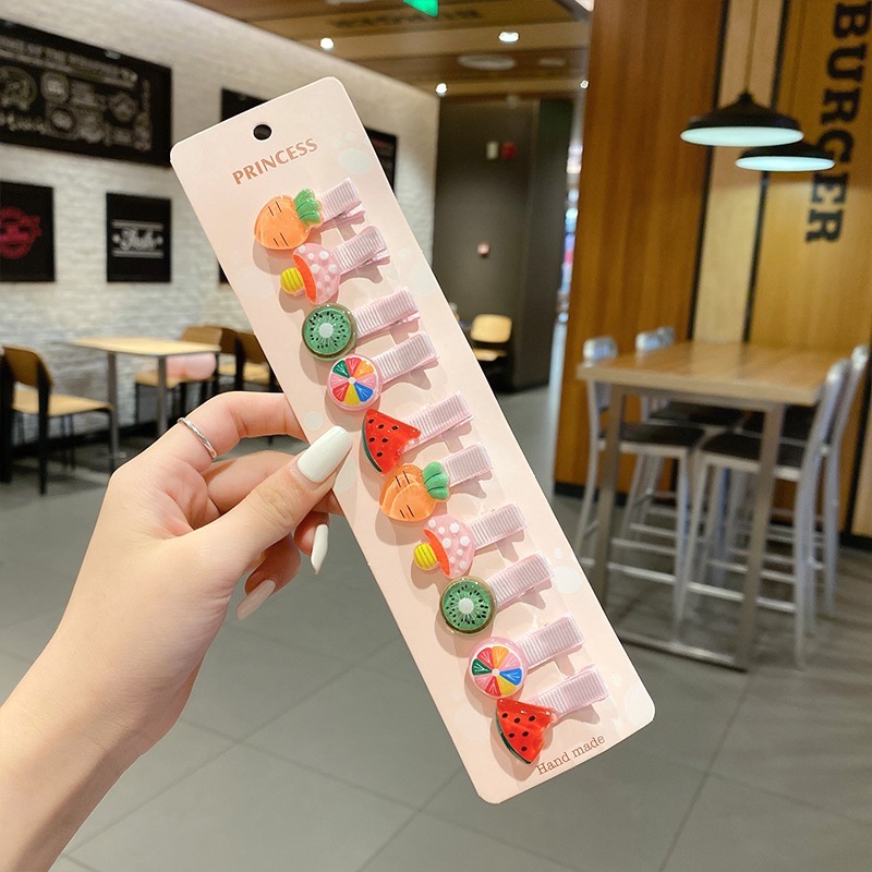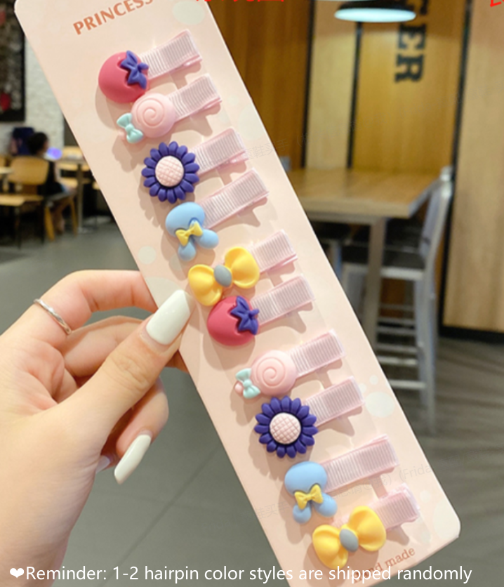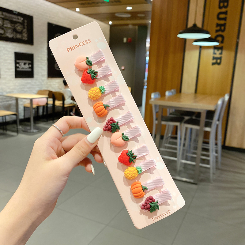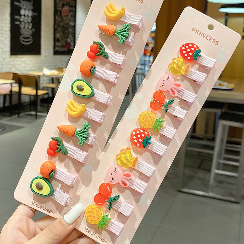 Conjunto De Grampos De Cabelo Para Bebês Com 10 Peças-Design Floral E Frutas Fofo , Aderência Macia Sem Puxar Crianças ,