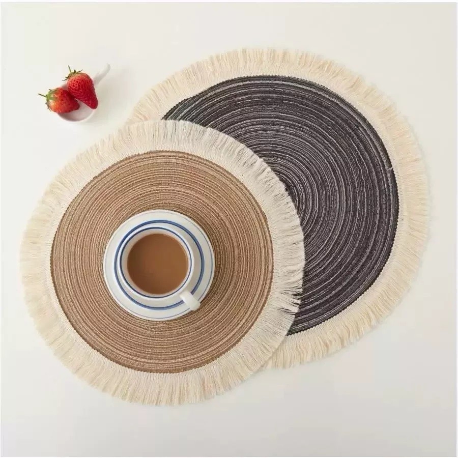 Conjunto De Jogo Americano de Algodão Kit 6 ou 4 ou 2 com Franja Multicolorido 38cm Descanso De Mesa