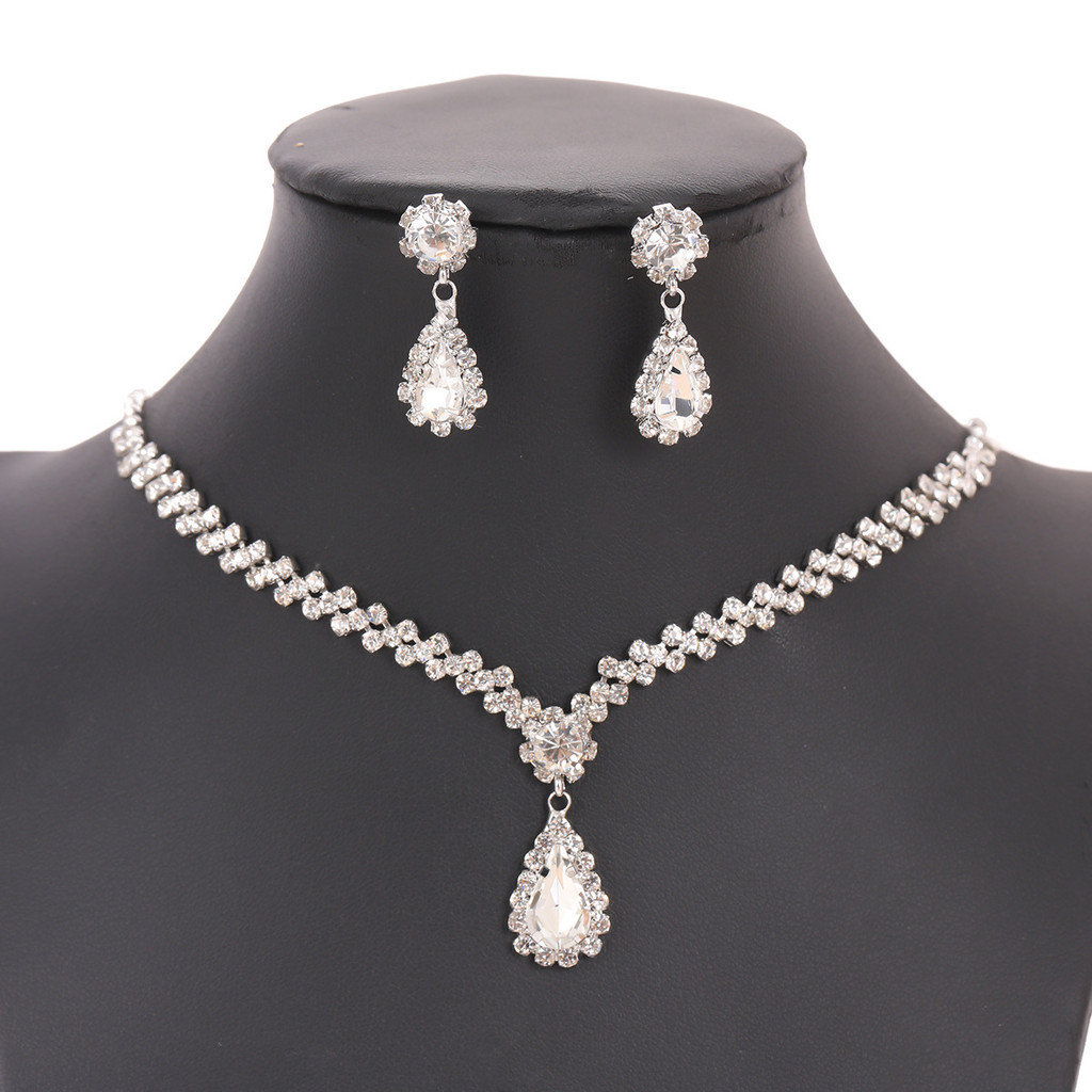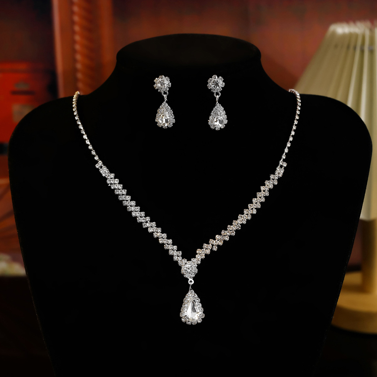 Conjunto De Joias De Noiva De Prata Para Mulheres , Colar De Casamento , Brincos , 2 Peças , Acessórios De Festa