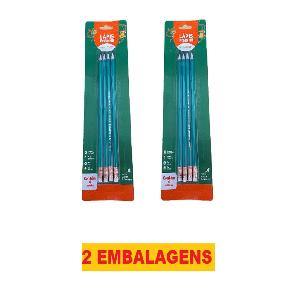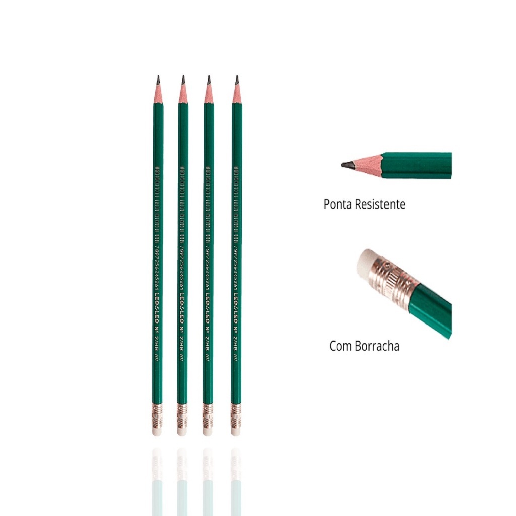 Conjunto De Lápis com 4 unidades Lápis Preto Leo&Leo Grafite Com Borracha HB Verde Sextavado