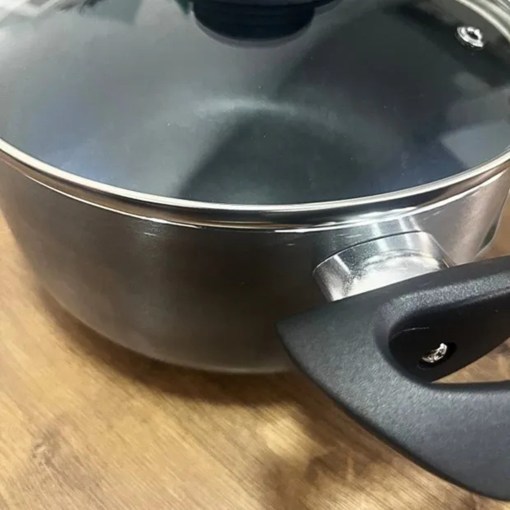 Conjunto De Panelas 8 Pçs Cerâmico Antiaderente Acabamento Aço Inox Tampa De Vidro Premium Inmetro