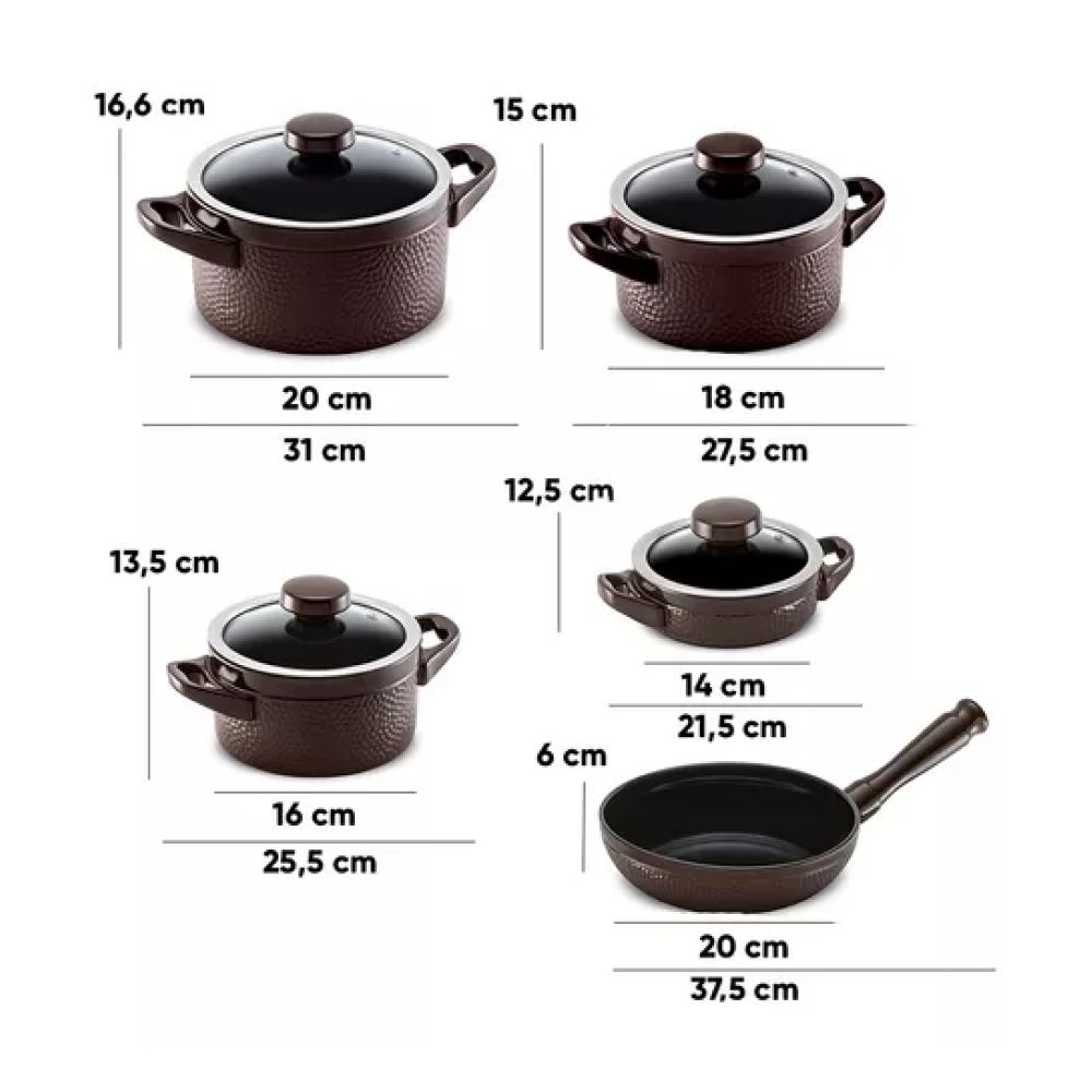 Conjunto De Panelas Marteladas Cerâmica 5 Peças Chocolate Ceraflame